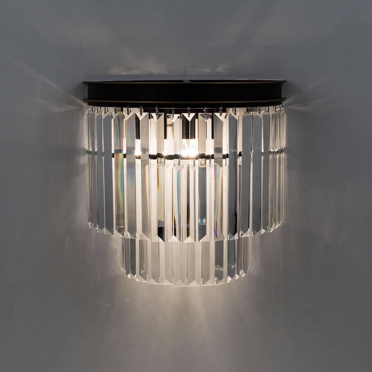 Настенный светильник Citilux Мартин CL332321 от Китайского бренда Citilux из коллекции Мартин предназначен для установки на стену в гостиной в современном стиле. Cветильник в форме декоративного с металлической арматурой черного цвета и прозрачного цвета плафонами из хрусталя предназначен для освещения 6,7 м2.