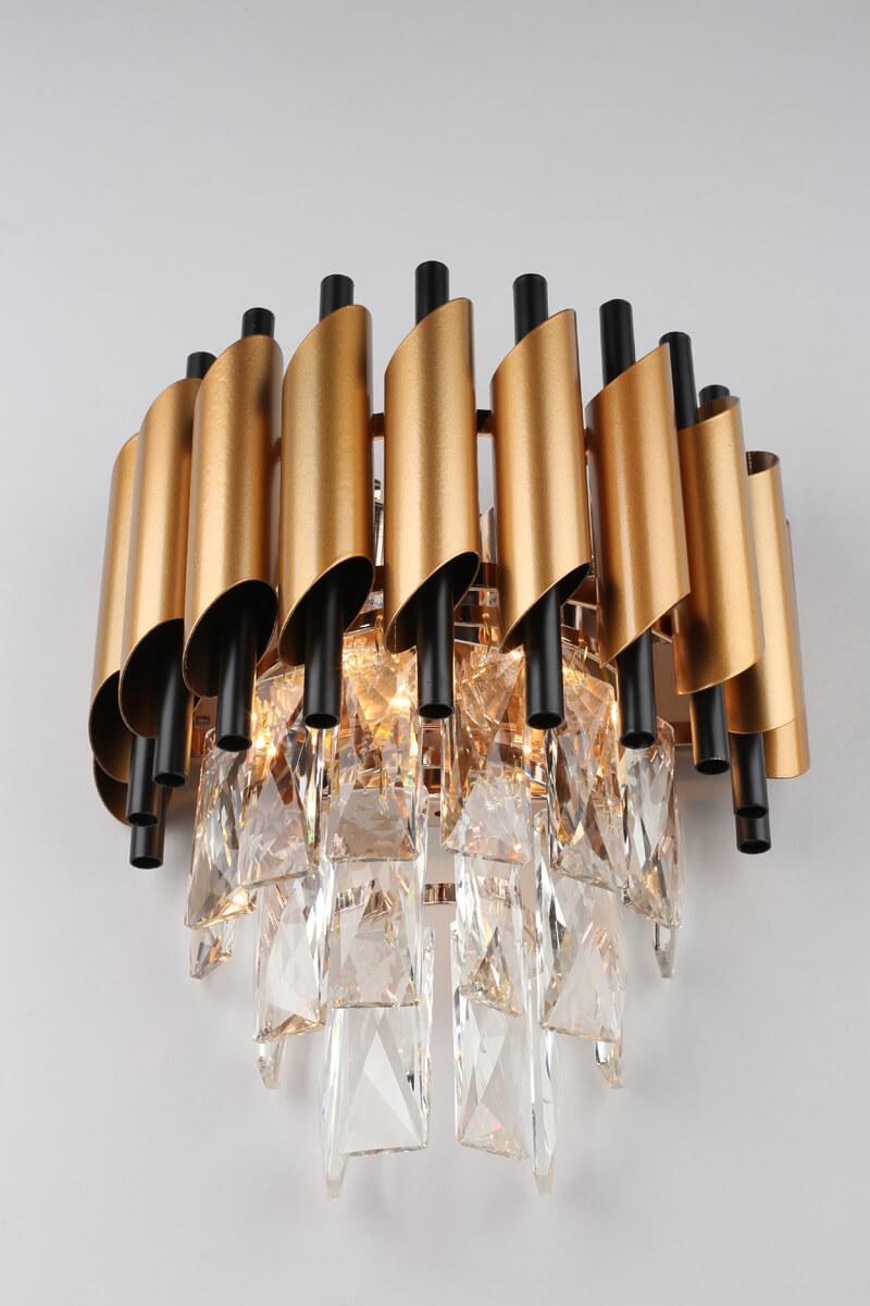Настенный светильник Omnilux Fontevivo OML-81901-02 от Китайского бренда Omnilux из коллекции Fontevivo предназначен для установки на стену в спальни в классиком стиле. Cветильник в форме цилиндра с металлической арматурой залотого цвета и прозрачного цвета плафонами из хрусталя предназначен для освещения 4 м2.