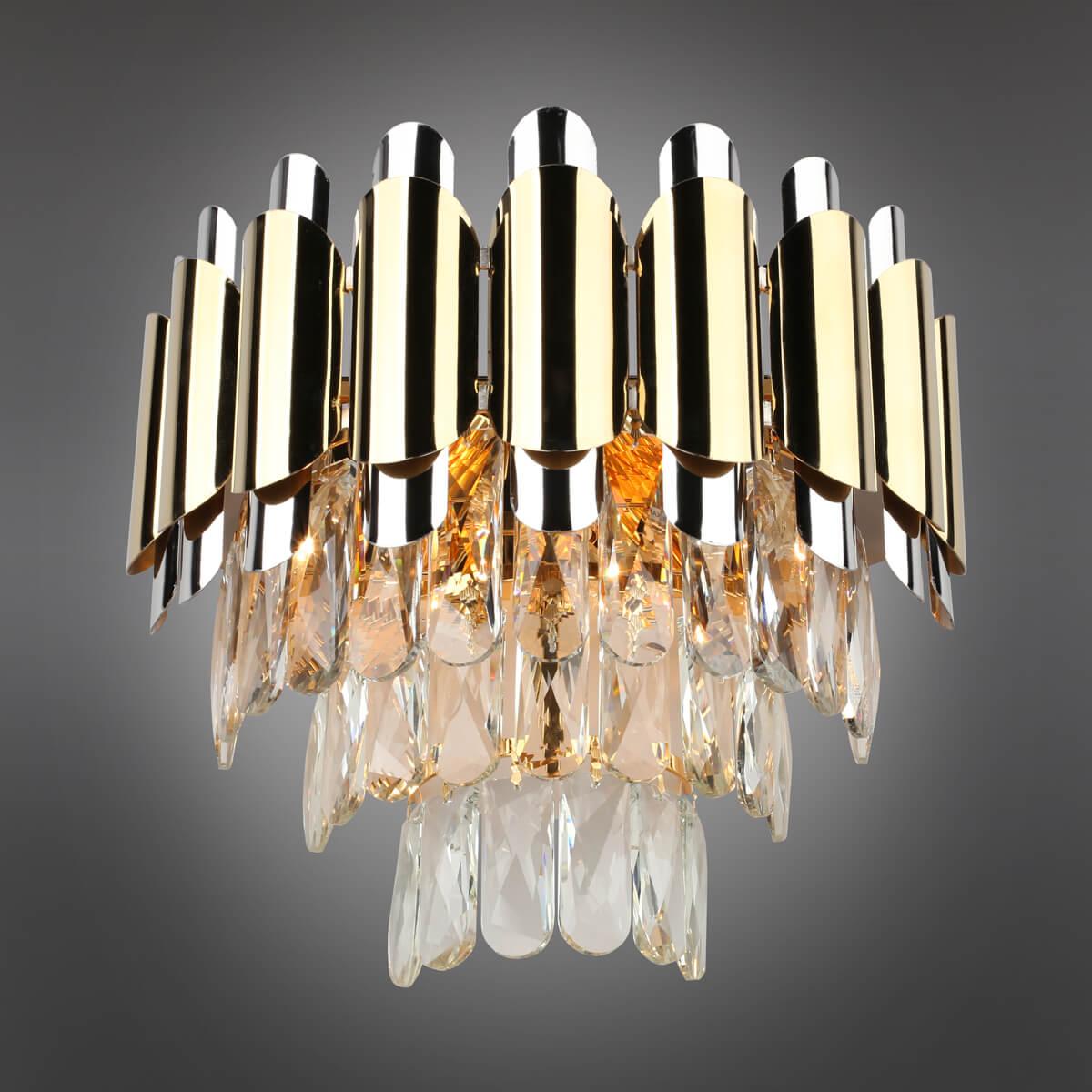 Настенный светильник Omnilux Malgrate OML-81401-03 от Китайского бренда Omnilux из коллекции Malgrate предназначен для установки на стену в классиком стиле. Cветильник в форме цилиндра с металлической арматурой залотого цвета и прозрачного цвета плафонами из хрусталя предназначен для освещения 4 м2.