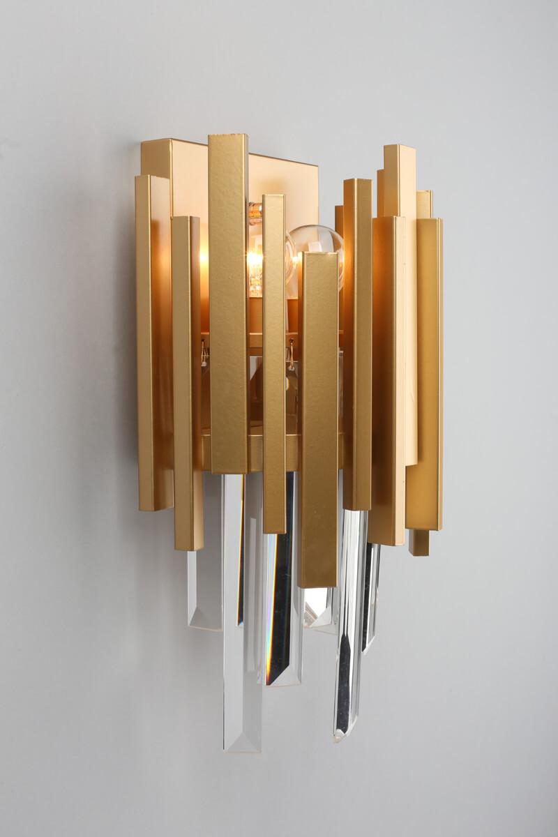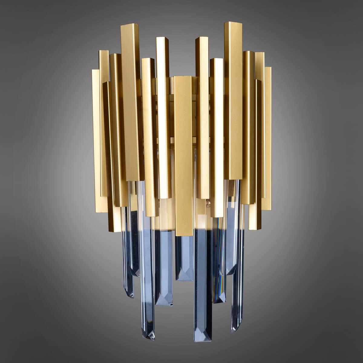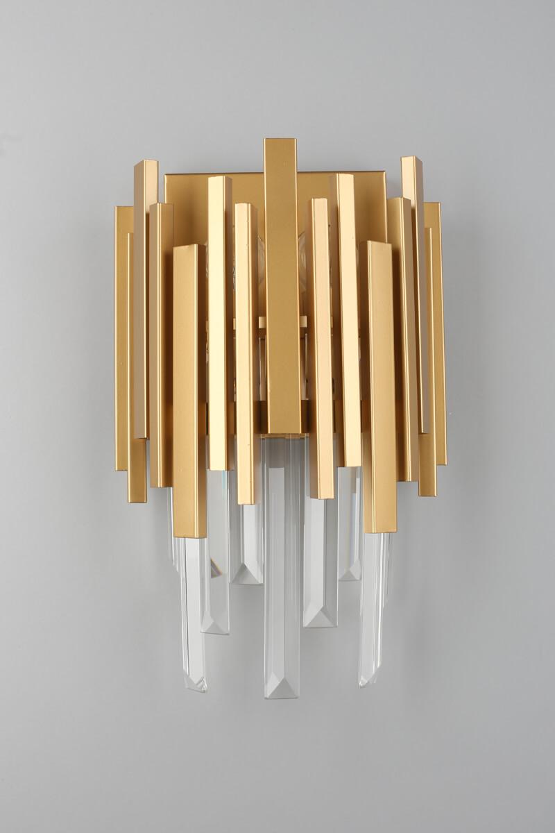 Настенный светильник Omnilux Carisio OML-72801-02 от Китайского бренда Omnilux из коллекции Carisio предназначен для установки на стену в гостиной в классиком стиле. Cветильник в форме цилиндра с металлической арматурой залотого цвета и прозрачного цвета плафонами из хрусталя предназначен для освещения 4 м2.