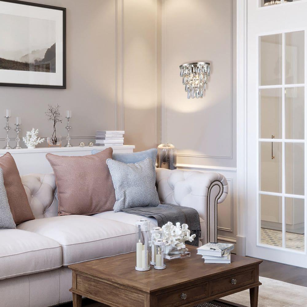 Настенный светильник Lumien Hall Сальваторе LH0037/1W-NK-CL от бренда Lumien Hall из коллекции Сальваторе предназначен для установки на стену в гостиной в классиком стиле. Cветильник в форме конуса с металлической арматурой цвета никель и прозрачного цвета плафонами из хрусталя предназначен для освещения 2,2 м2.