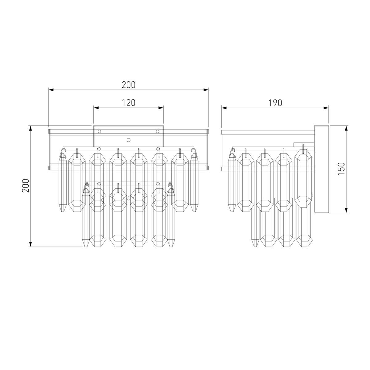 Для светильника необходима 2 лампы накаливания 60 W. Габариты изделия: высота – 200 мм, диаметр – мм.