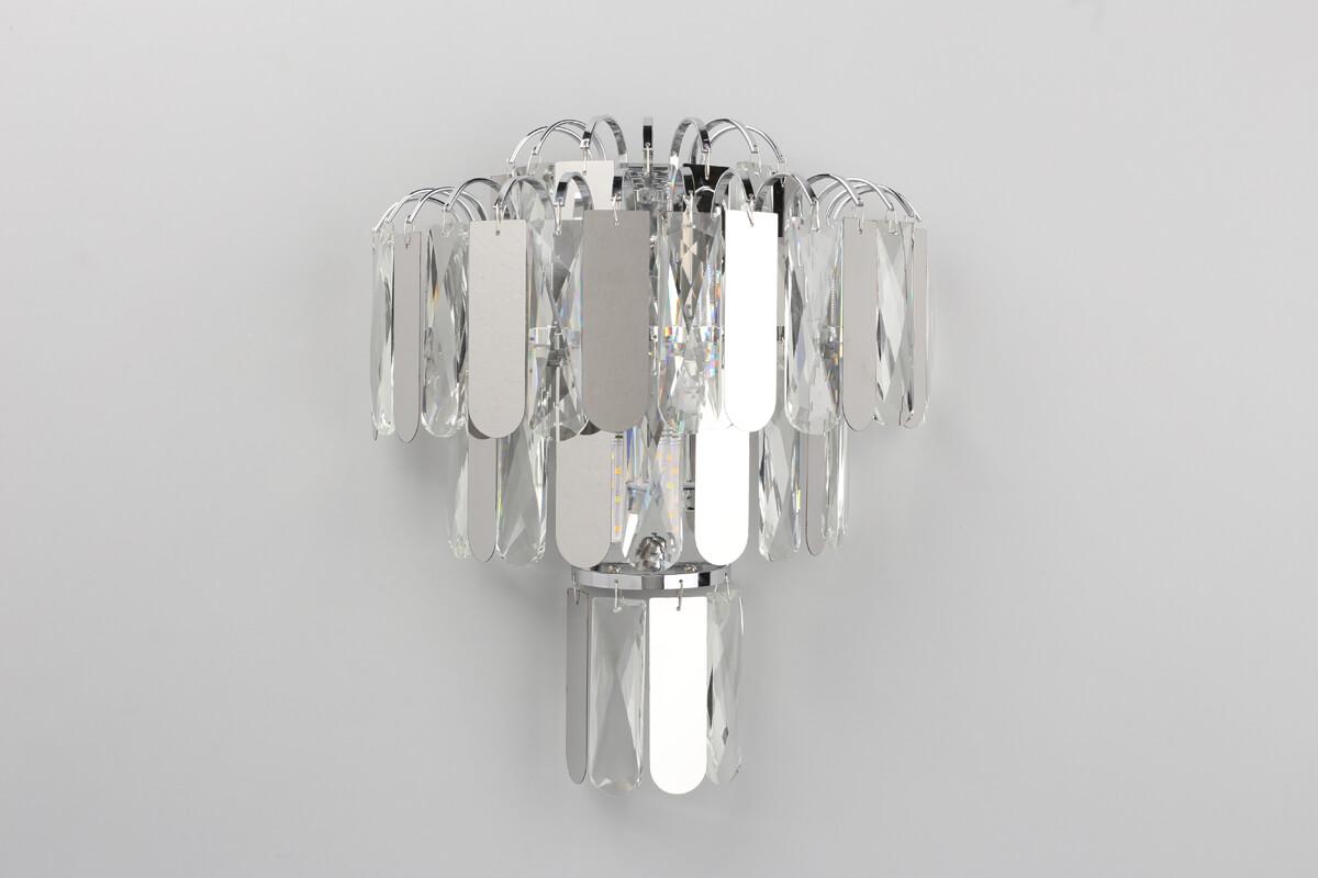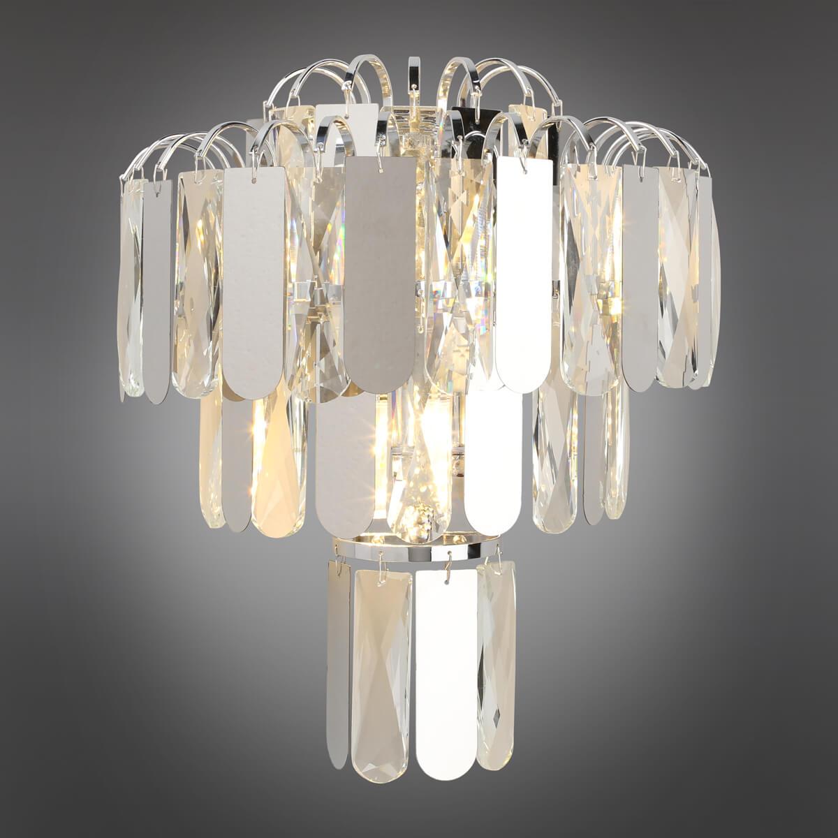 Настенный светильник Omnilux Briatico OML-88801-02 от Китайского бренда Omnilux из коллекции Briatico предназначен для установки на стену в спальни в классиком стиле. Cветильник в форме декоративного с металлической арматурой цвет хрома и цвет хрома плафонами из хрусталя предназначен для освещения 16 м2.