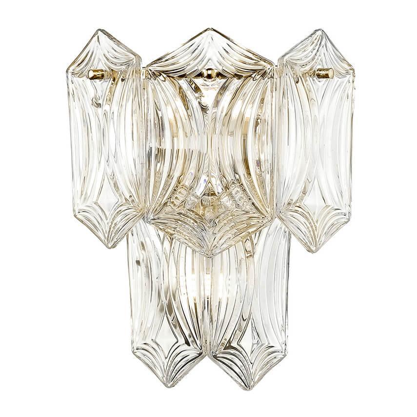 Настенный светильник Zumaline Corato W0475-02A-F7AC от Польского бренда из коллекции Corato предназначен для установки на стену в гостиной в стиле модерн. Cветильник в форме с металлической арматурой и прозрачного цвета плафонами из хрусталя предназначен для освещения м2.