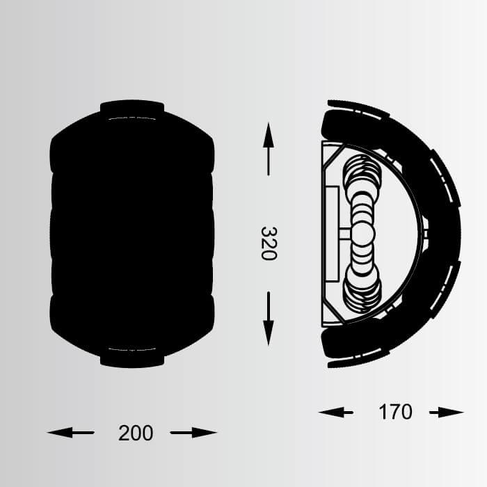 Для светильника необходима 2 лампы накаливания 24 W. Габариты изделия: высота – 200 мм, диаметр – мм.