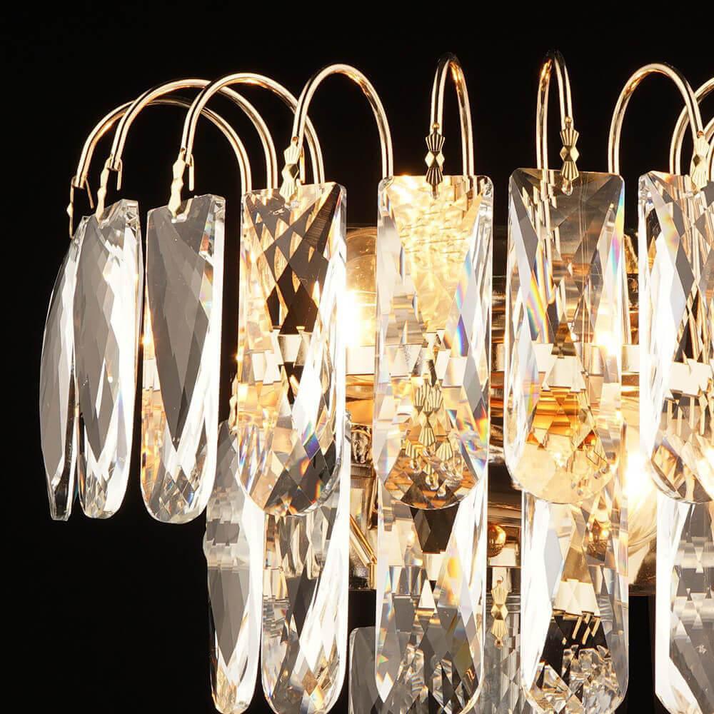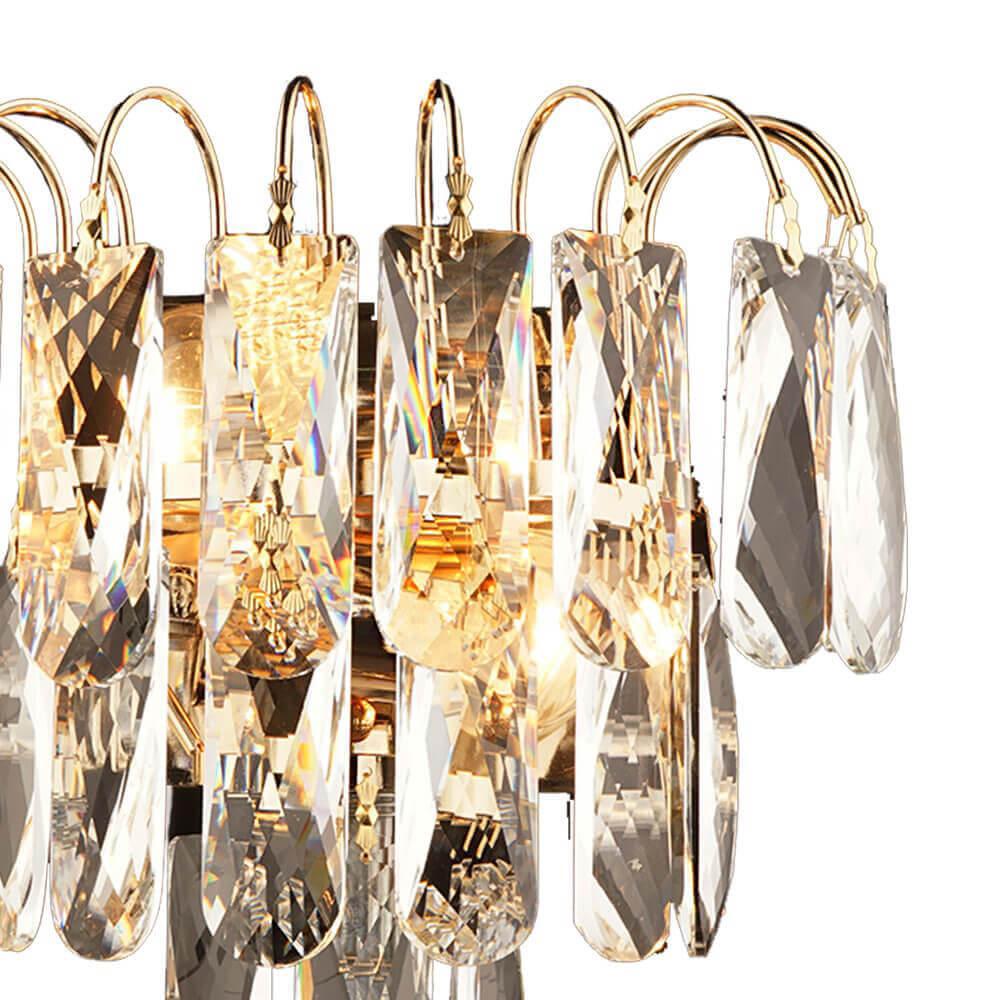 Настенный светильник Seven Fires Зара 70625.02.01.02 от Китайского бренда из коллекции Зара предназначен для установки на стену в спальни в стиле модерн. Cветильник в форме с металлической арматурой и прозрачного цвета плафонами из хрусталя предназначен для освещения 6 м2.