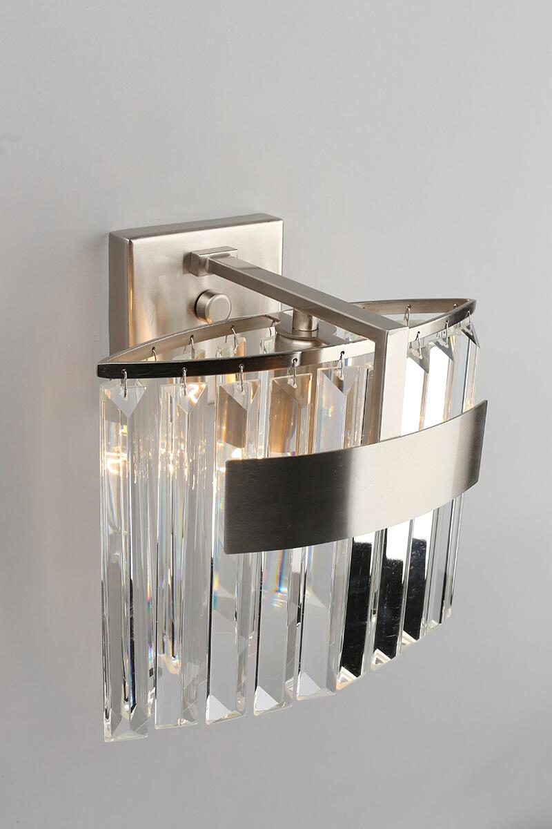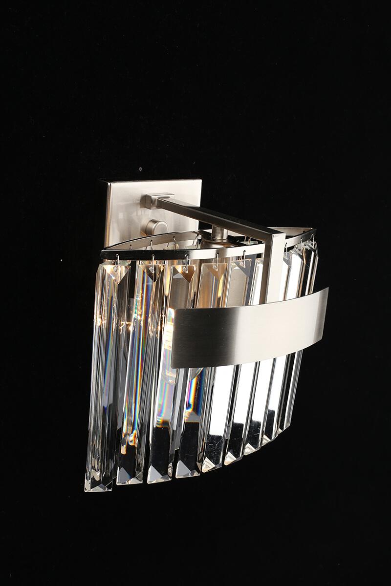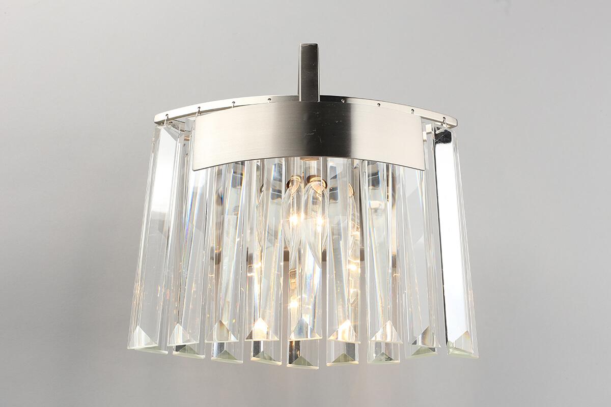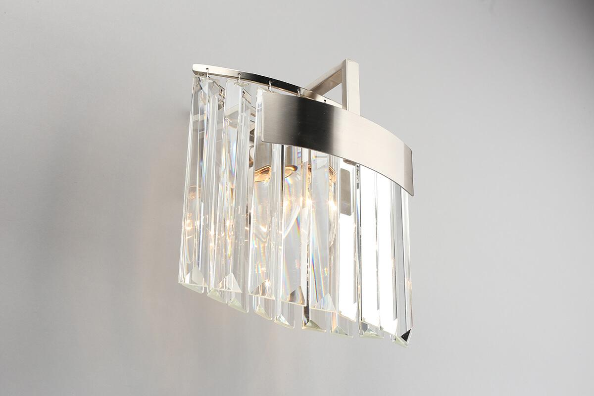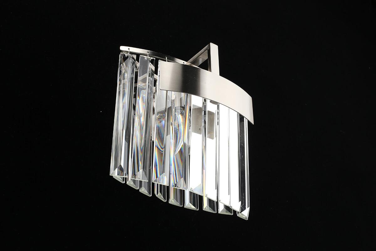 Настенный светильник Aployt Mariz APL.813.01.01 от Польского бренда из коллекции Mariz предназначен для установки на стену в гостиной в стиле модерн. Cветильник в форме с металлической арматурой цвета никель и прозрачного цвета плафонами из хрусталя предназначен для освещения м2.
