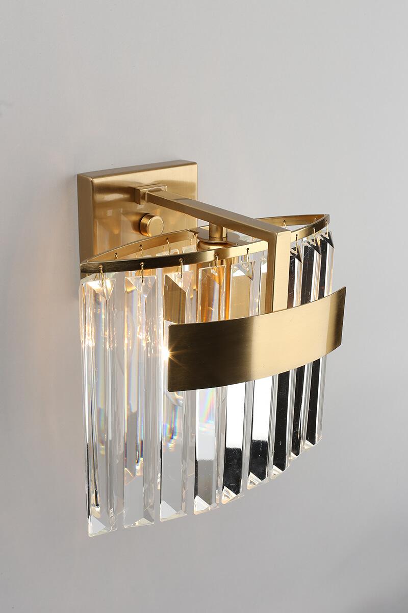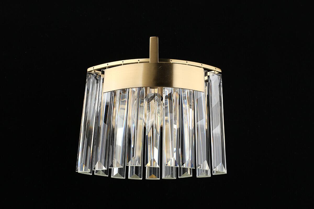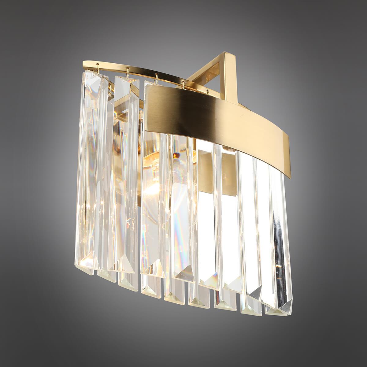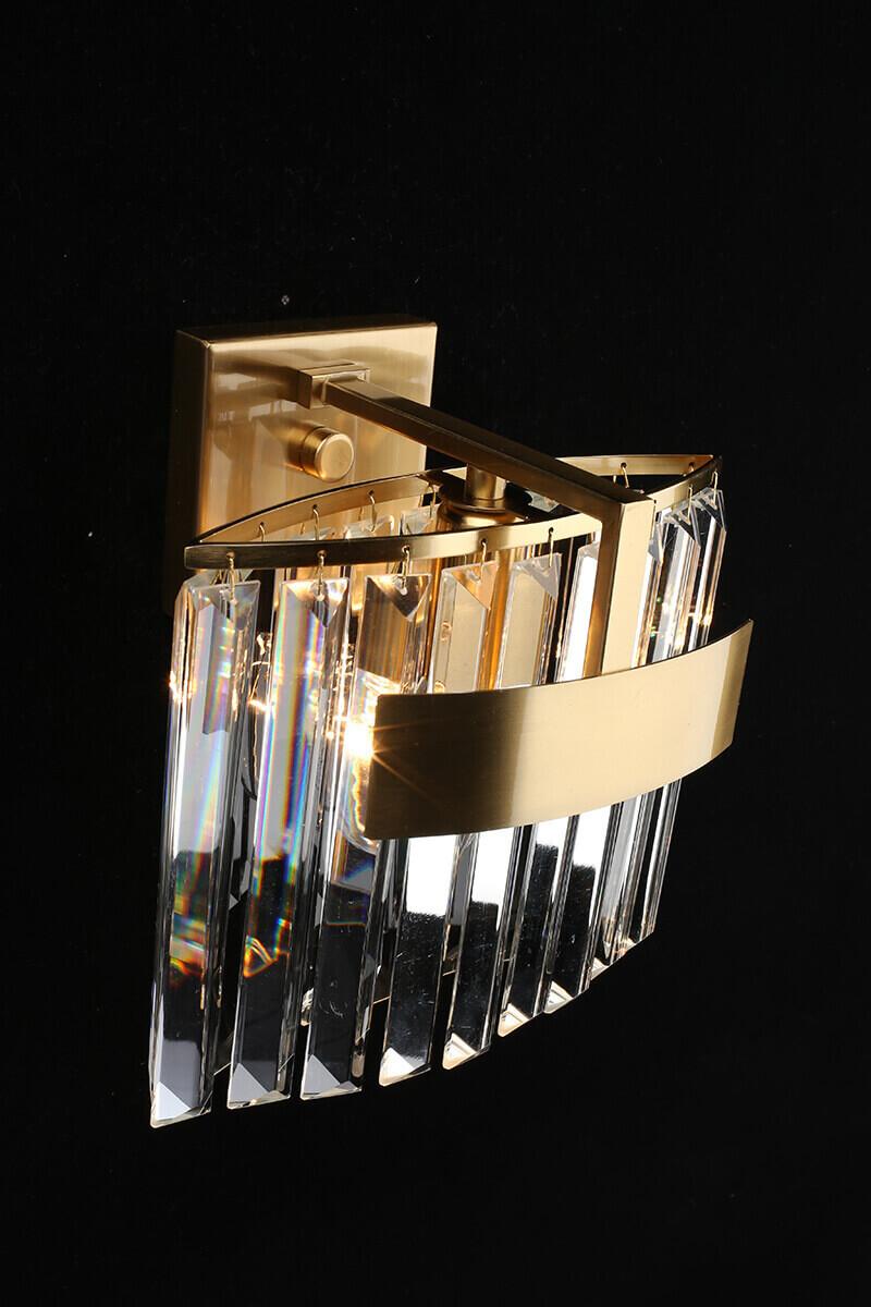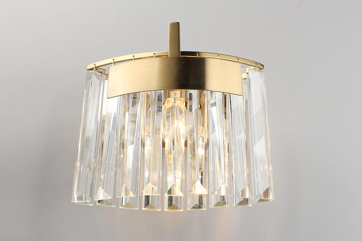 Настенный светильник Aployt Mariz APL.813.11.01 от Польского бренда из коллекции Mariz предназначен для установки на стену в гостиной в стиле модерн. Cветильник в форме с металлической арматурой цвета латуни и прозрачного цвета плафонами из хрусталя предназначен для освещения м2.