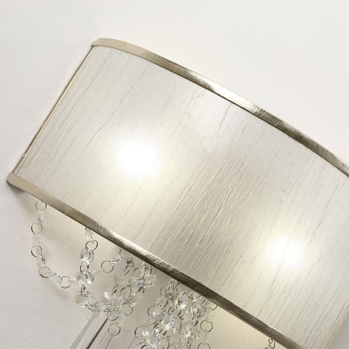 Настенный светильник F-Promo Elfo 3043-2W от Немецкого бренда из коллекции Elfo предназначен для установки на стену в спальни в стиле Арт-деко. Cветильник в форме с металлической арматурой серебрянного цвета и цвета шампунт плафонами из ткани предназначен для освещения м2.