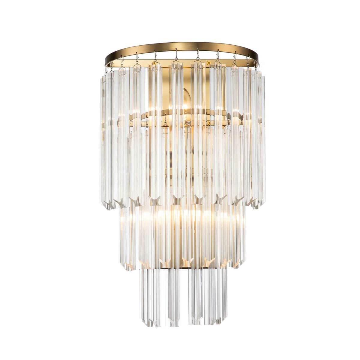 Настенный светильник Moderli Ivo V7051-2W от Китайского бренда из коллекции Ivo предназначен для установки на стену в гостиной в стиле модерн. Cветильник в форме с металлической арматурой цвета латуни и прозрачного цвета плафонами из стекла предназначен для освещения м2.