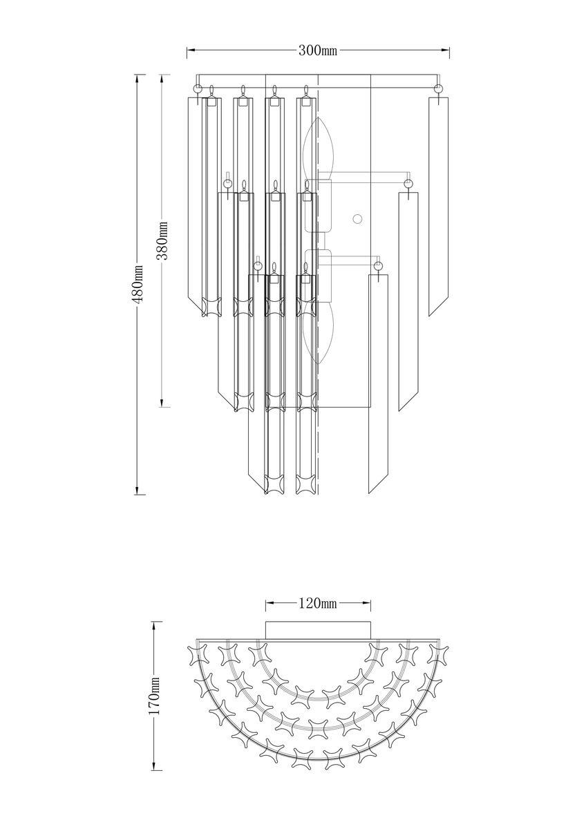 Для светильника необходима 2 лампы накаливания 40 W. Габариты изделия: высота – 480 мм, диаметр – мм.