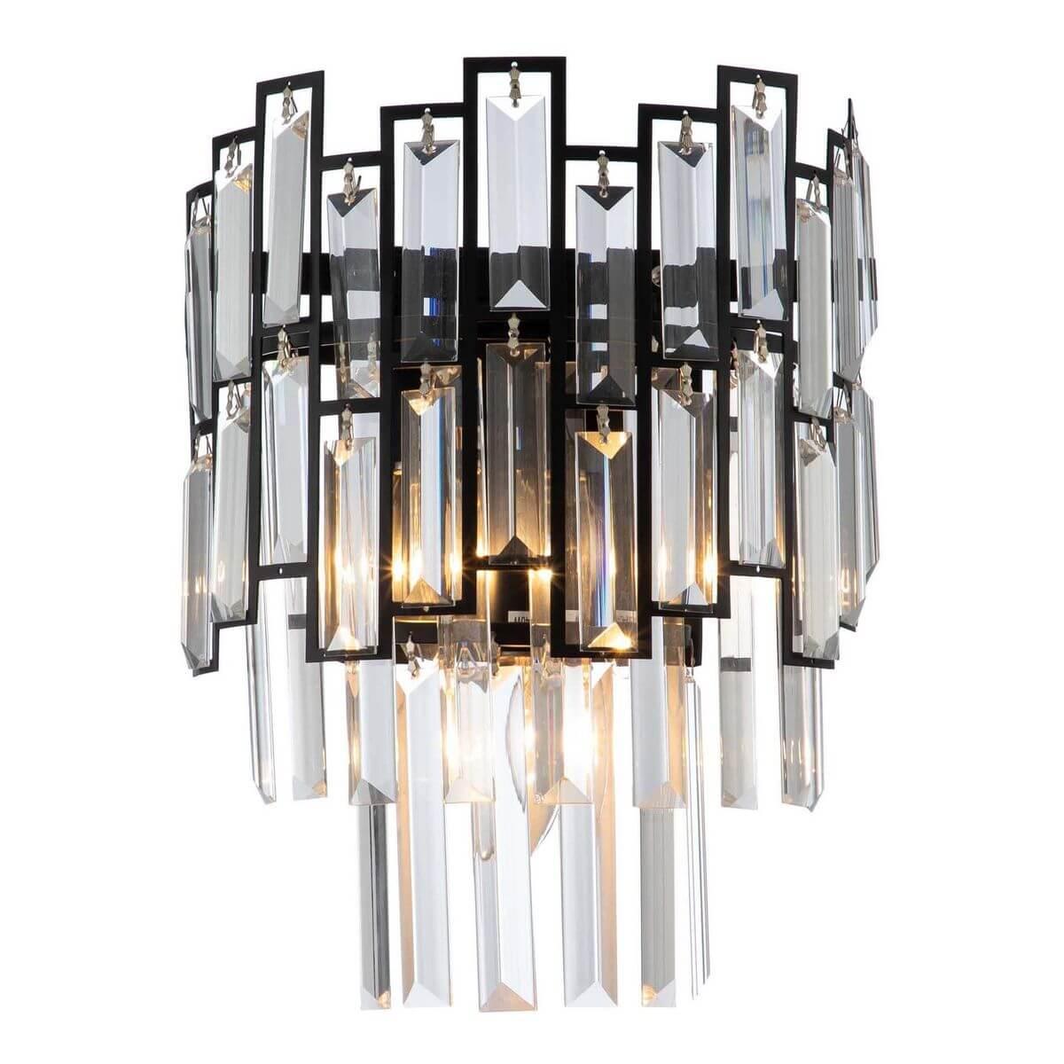 Настенный светильник Moderli Kozzy V7001-3W от Китайского бренда из коллекции Vergily предназначен для установки на стену в гостиной в стиле модерн. Cветильник в форме с металлической арматурой черного цвета и прозрачного цвета плафонами из хрусталя предназначен для освещения м2.