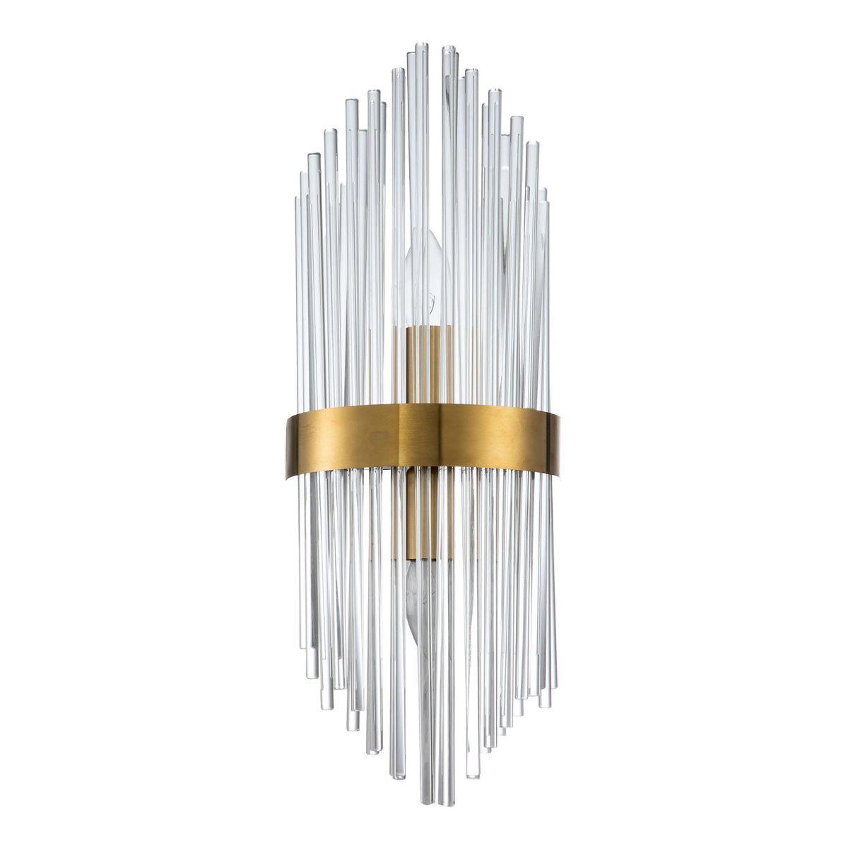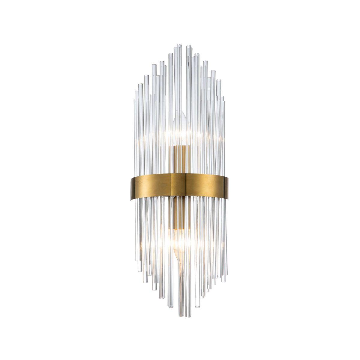 Настенный светильник Moderli Onetto V7021-2W от Китайского бренда из коллекции Onetto предназначен для установки на стену в прихожей в стиле модерн. Cветильник в форме с металлической арматурой цвета латуни и прозрачного цвета плафонами из стекла предназначен для освещения м2.