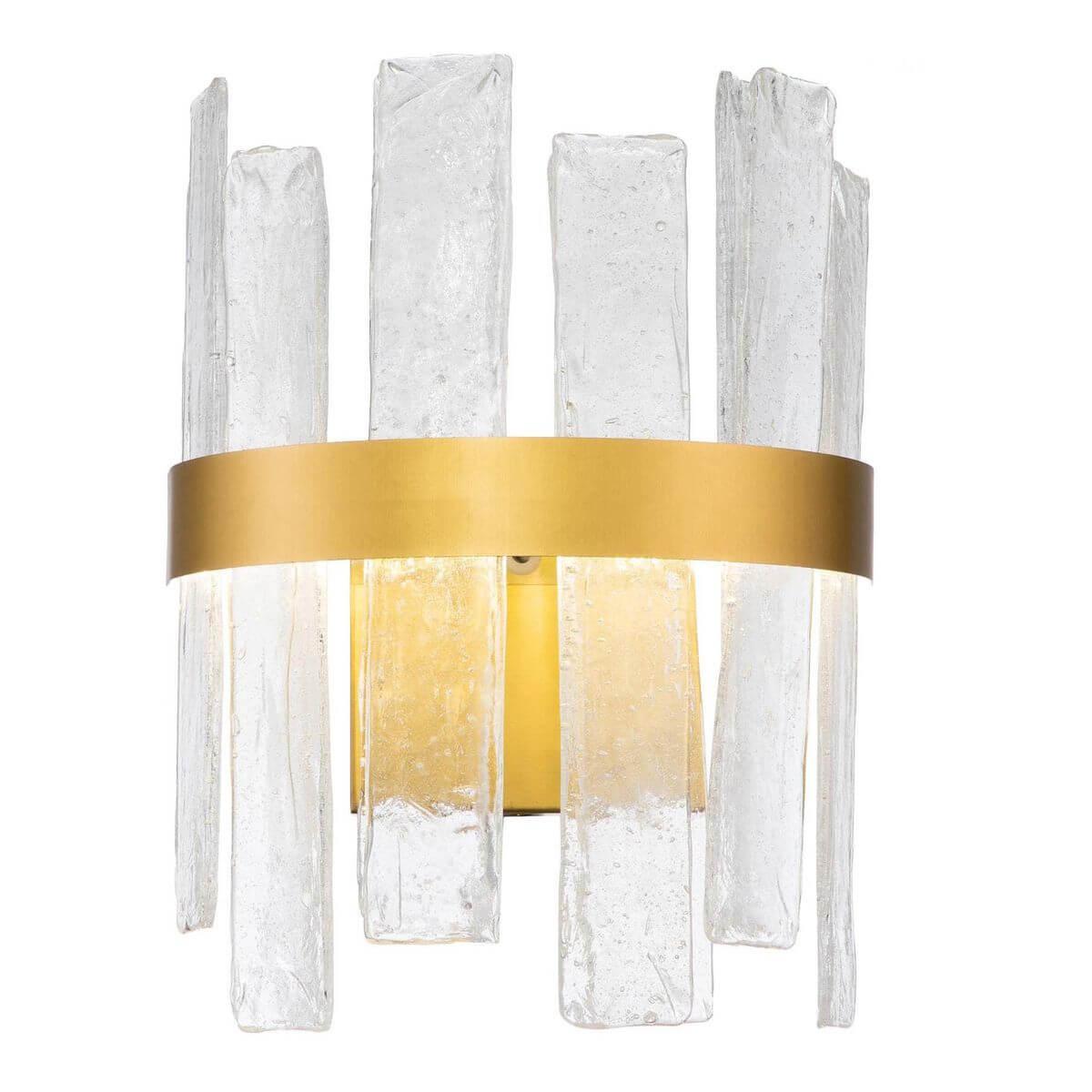 Настенный светодиодный светильник Moderli Lima V9001-WL от Китайского бренда из коллекции Lima предназначен для установки на стену в гостиной в стиле модерн. Cветильник в форме с стальной арматурой цвета латуни и прозрачного цвета плафонами из стекла предназначен для освещения м2.
