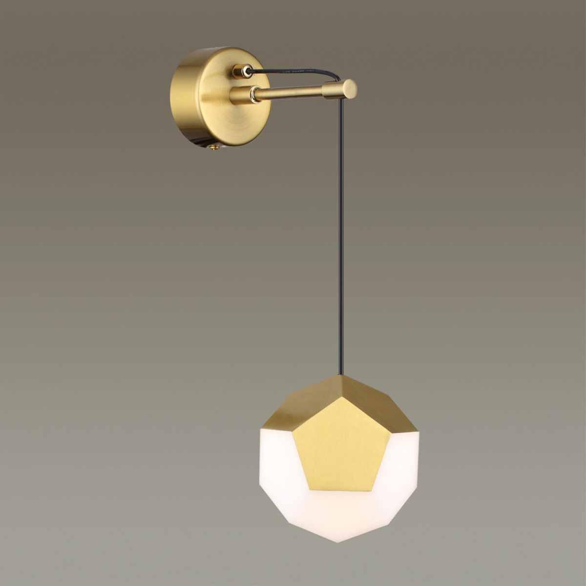 Настенный светильник Odeon Light Hightech Bingo 4305/7WL от Итальянского бренда из коллекции Bingo предназначен для установки на стену в гостиной в хай-тек стиле. Cветильник в форме с металлической арматурой залотого цвета и белого цвета плафонами из акрила предназначен для освещения 3 м2.