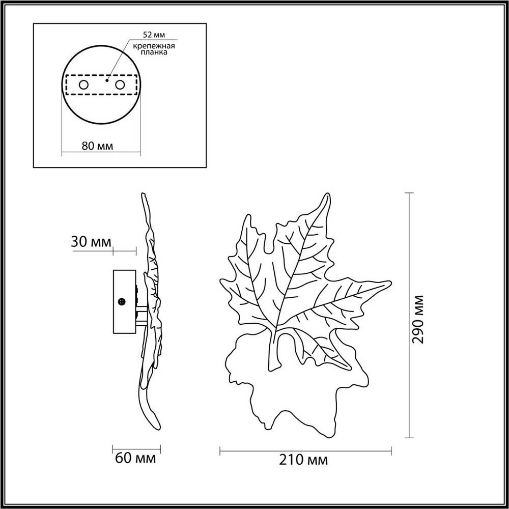 Для светильника необходима 1 светодиодная лампа 6 W. Габариты изделия: высота – 210 мм, диаметр – мм.
