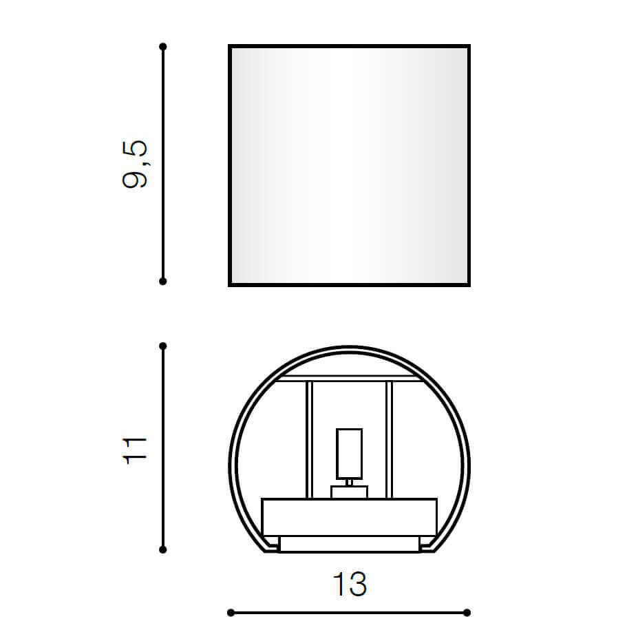 Для светильника необходима 2 галогеновые лампы 40 W. Габариты изделия: высота – 95 мм, диаметр – мм.
