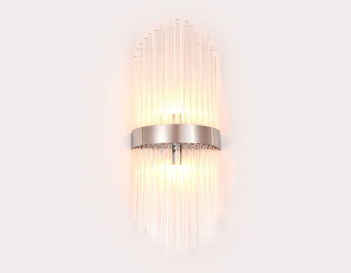 Настенный светильник Ambrella light Traditional TR5371 от бренда Ambrella light из коллекции Traditional предназначен для установки на стену в гостиной в стиле Арт-деко. Cветильник в форме цилиндра с металлической арматурой цвет хрома и прозрачного цвета плафонами из хрусталя предназначен для освещения 4 м2.