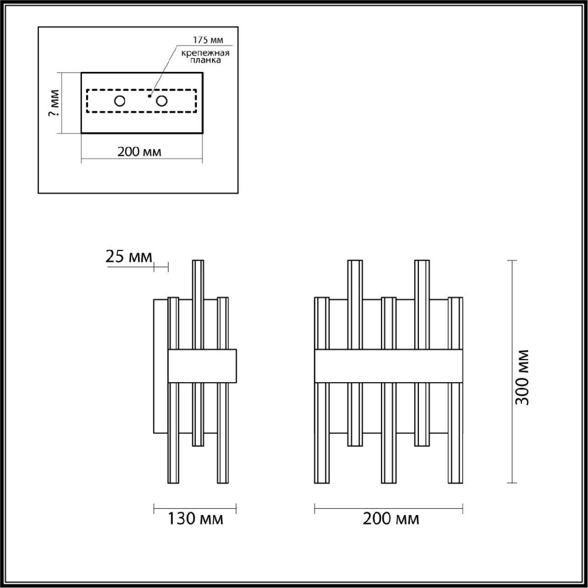Для светильника необходима 2 лампы накаливания 40 W. Габариты изделия: высота – 300 мм, диаметр – мм.