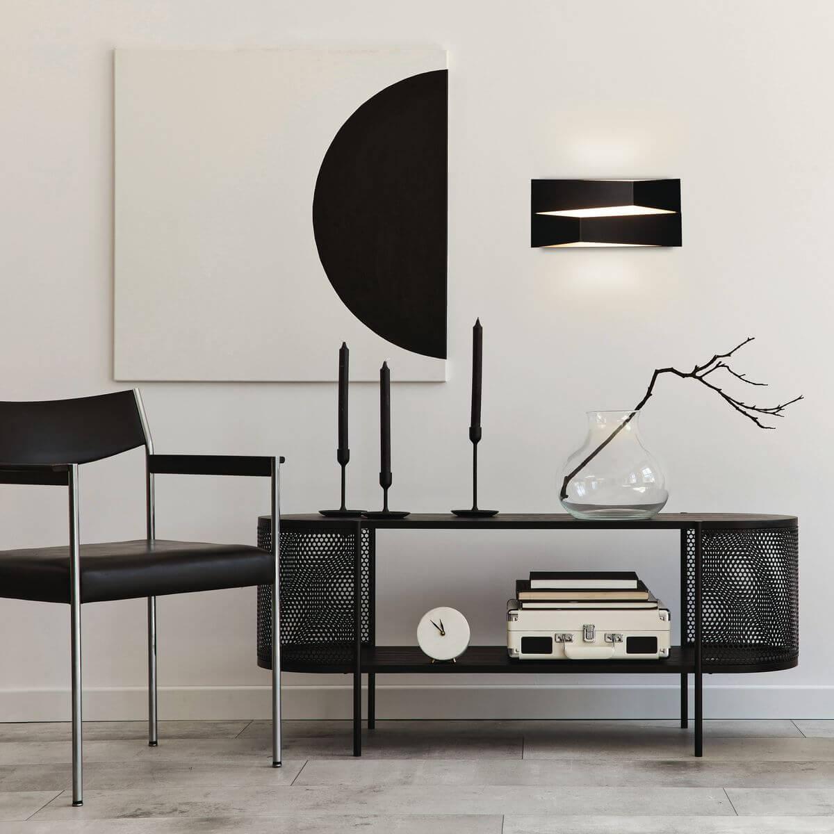 Настенный светодиодный светильник Mantra Fuji 8159 от Китайского бренда из коллекции Fuji предназначен для установки на стену в гостиной в хай-тек стиле. Cветильник в форме с металлической арматурой черного цвета и черного цвета плафонами из металла предназначен для освещения м2.