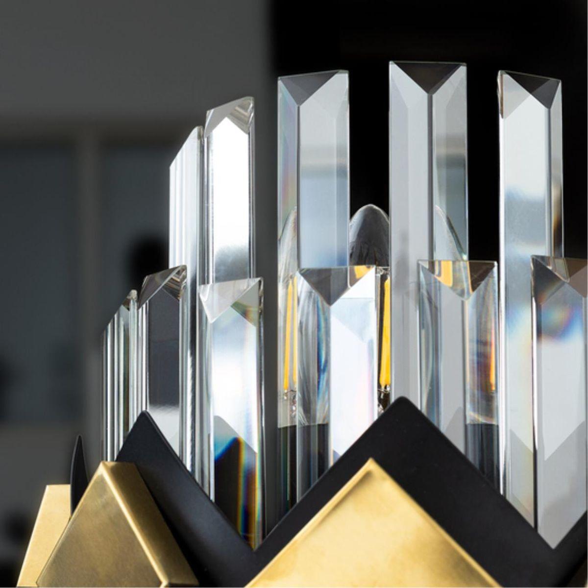 Настенный светильник Arte Lamp Amelia A1039AP-2BK от Китайского бренда из коллекции Amelia предназначен для установки на стену в гостиной в стиле модерн. Cветильник в форме с металлической арматурой залотого цвета и прозрачного цвета плафонами из хрусталя предназначен для освещения 4 м2.