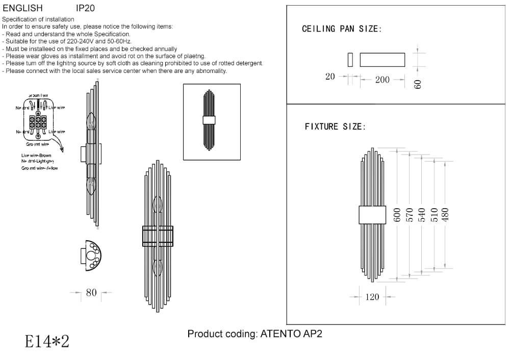 Для светильника необходима 2 лампы накаливания 60 W. Габариты изделия: высота – 600 мм, диаметр – мм.