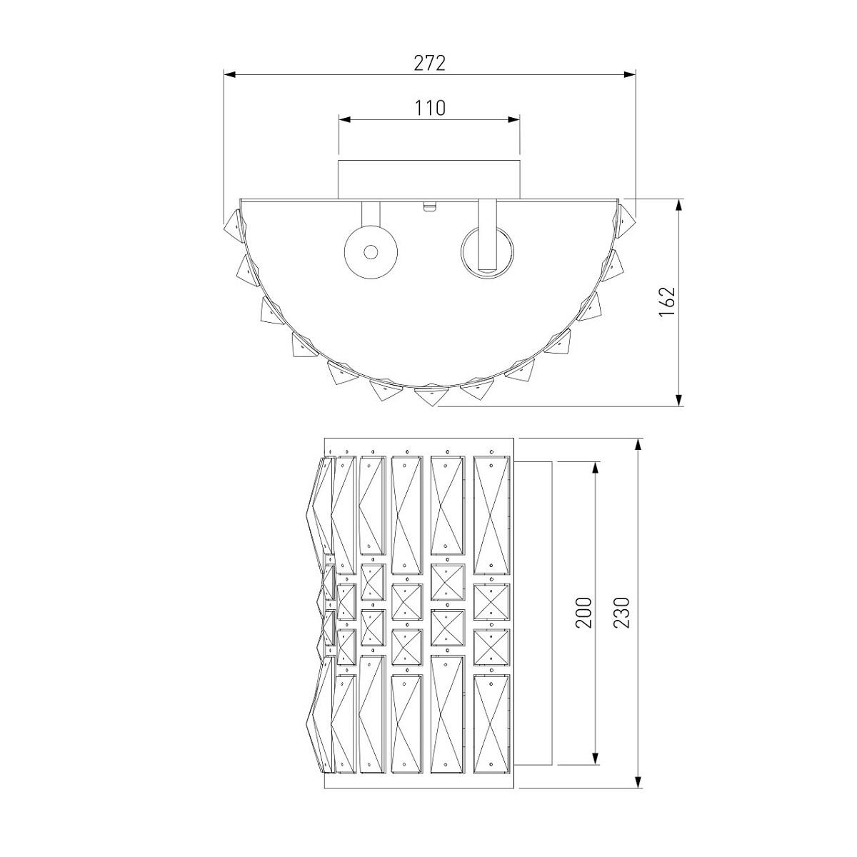 Для светильника необходима 2 лампы накаливания 60 W. Габариты изделия: высота – 230 мм, диаметр – мм.