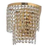 Настенный светильник Arti Lampadari Sara E 2.10.503 G от Итальянского бренда из коллекции Sara Gold предназначен для установки на стену в спальни в классиком стиле. Cветильник в форме с металлической арматурой залотого цвета и прозрачного цвета плафонами из хрусталя предназначен для освещения 3 м2.