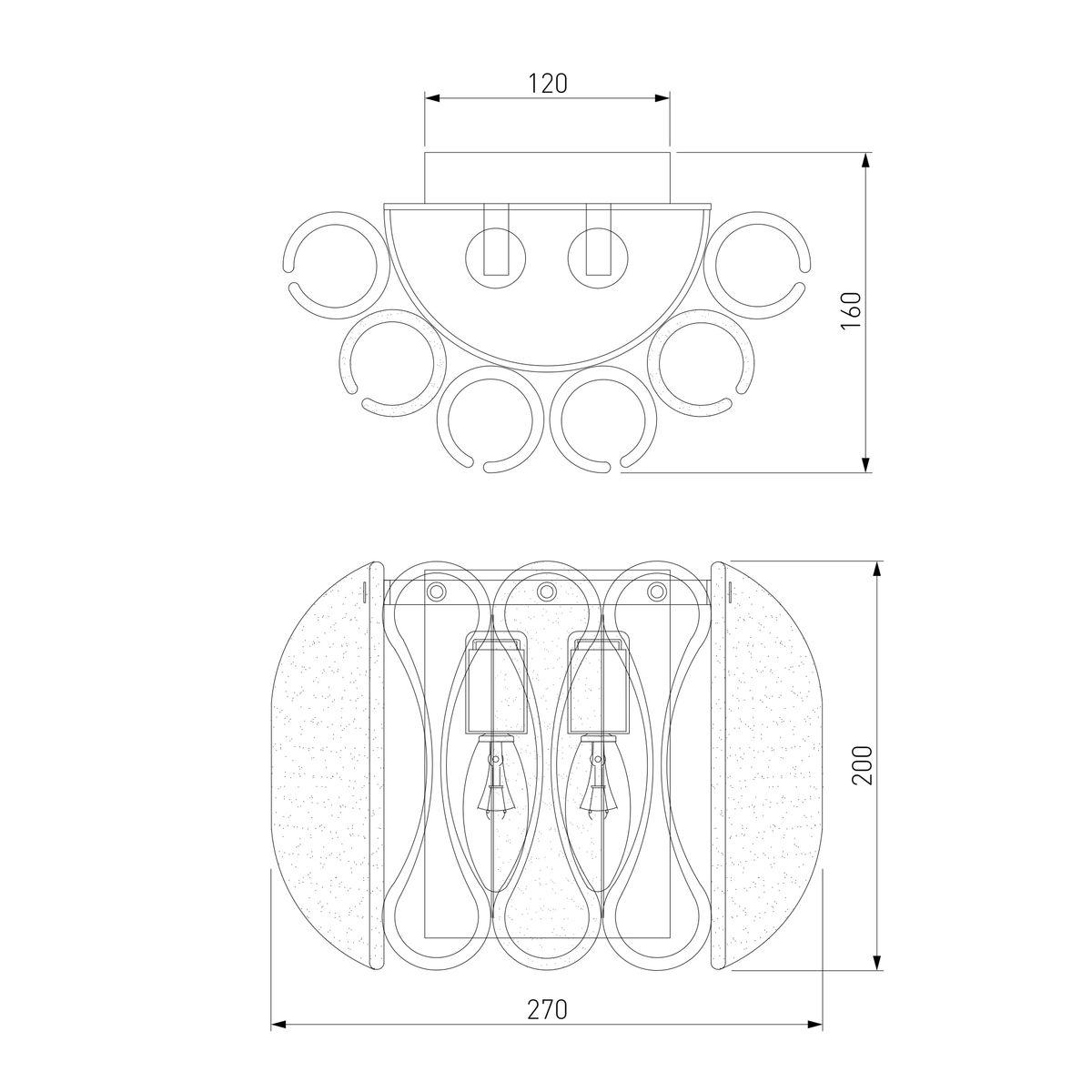 Для светильника необходима 2 лампы накаливания 60 W. Габариты изделия: высота – 200 мм, диаметр – мм.