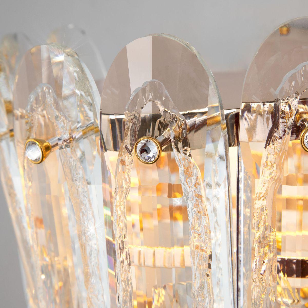 Настенный светодиодный светильник Bogates Chaleur 422/1 от Китайского бренда из коллекции Chaleur предназначен для установки на стену в стиле Арт-деко. Cветильник в форме с металлической арматурой залотого цвета и прозрачного цвета плафонами из хрусталя предназначен для освещения 2 м2.