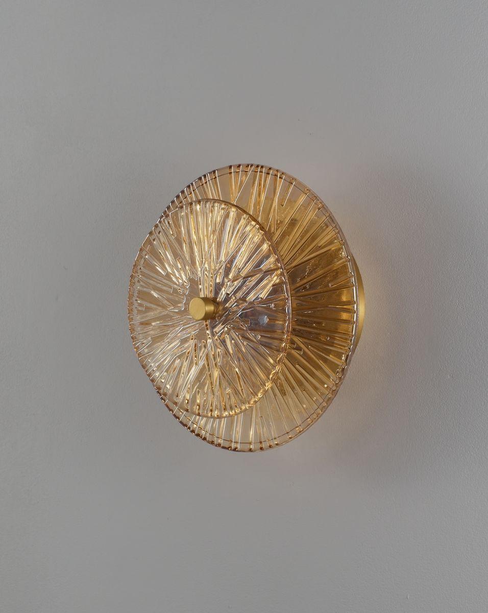 Настенный светодиодный светильник Moderli Brass V11022-WL от Китайского бренда из коллекции Brass предназначен для установки на стену в стиле модерн. Cветильник в форме с металлической арматурой цвета латуни и янтарного цвета плафонами из стекла предназначен для освещения 3 м2.
