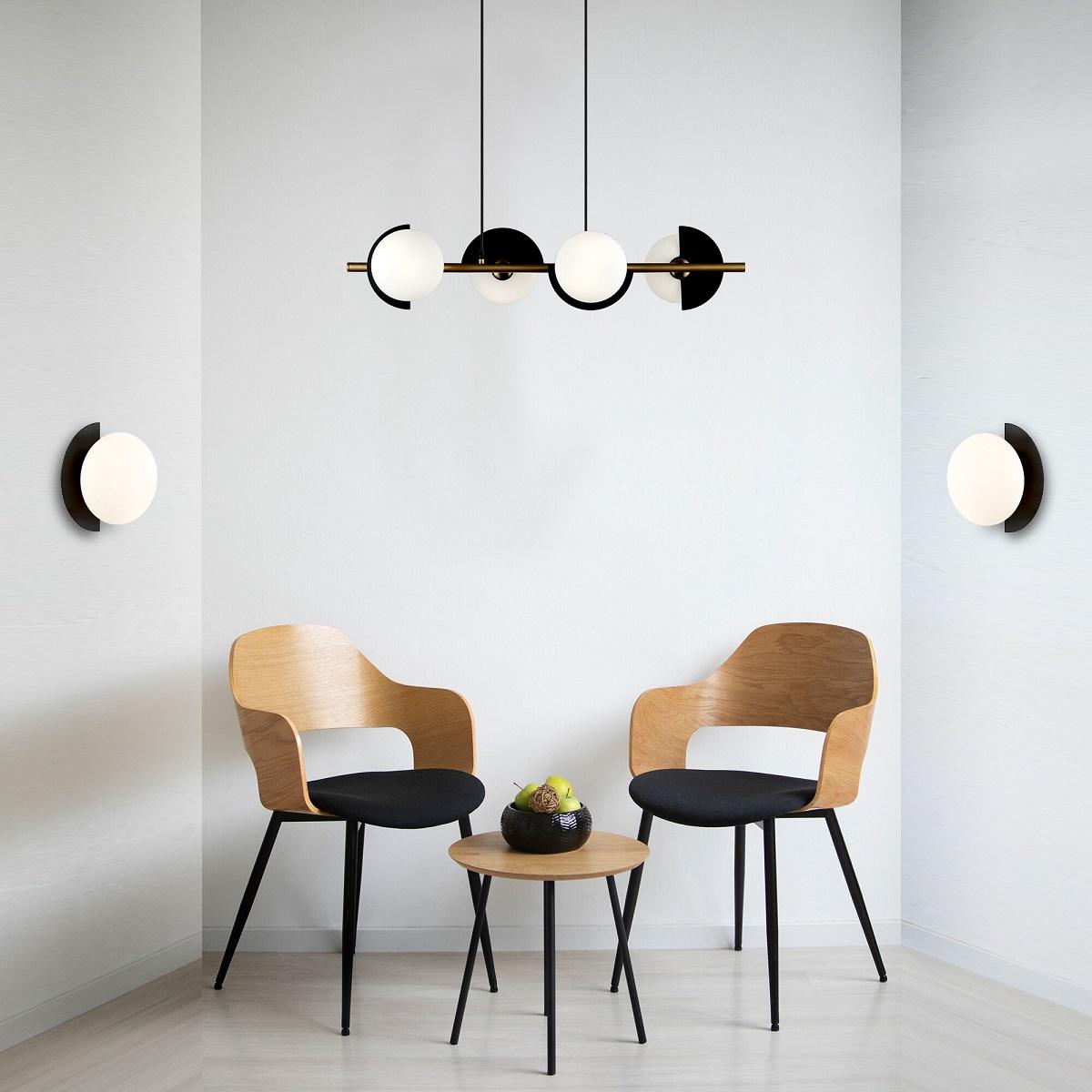 Настенный светильник Eurosvet Moity 70150/1 черный от Китайского бренда из коллекции Moity предназначен для установки на стену в спальни в стиле модерн. Cветильник в форме с металлической арматурой черного цвета и белого цвета плафонами из стекла предназначен для освещения 1 м2.
