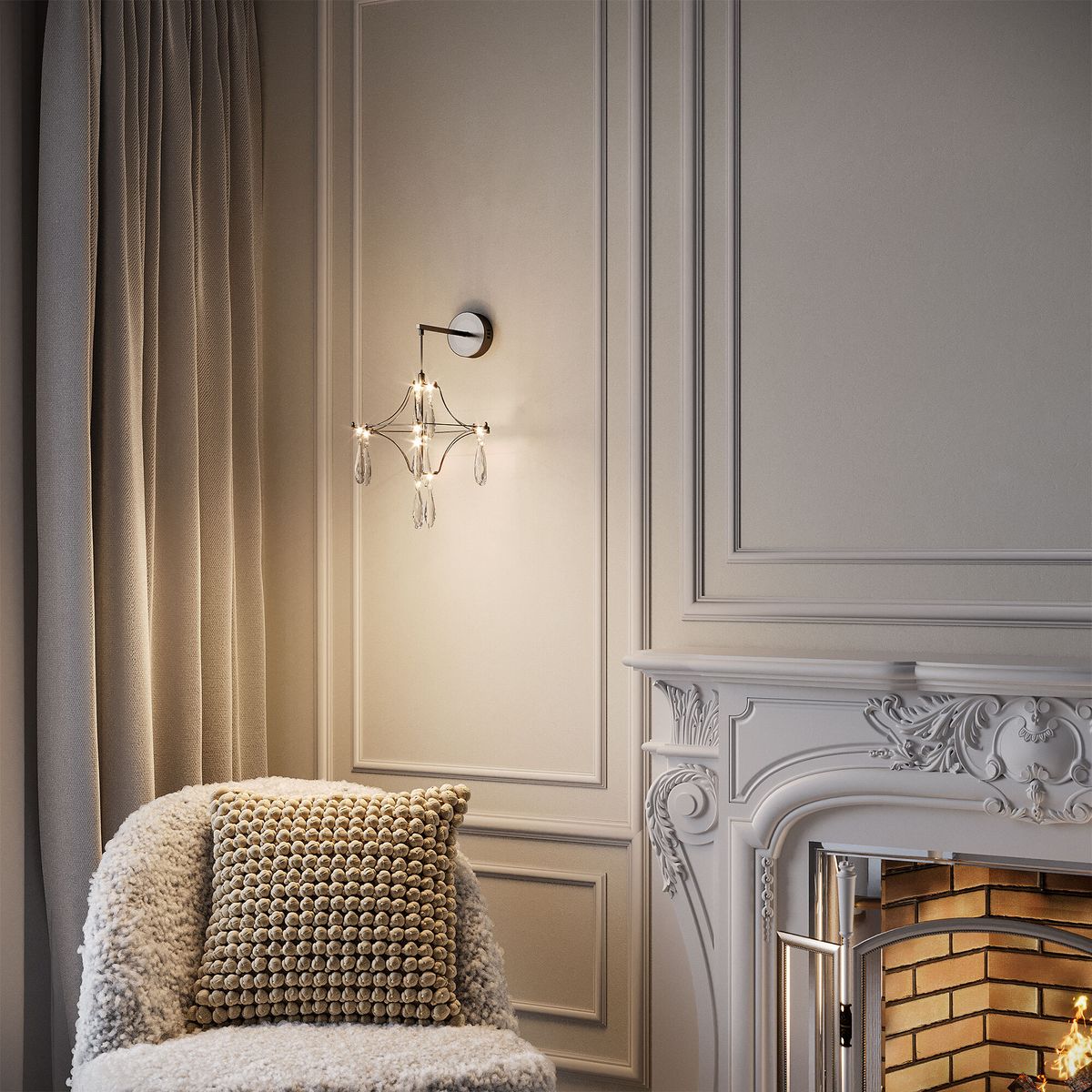 Настенный светодиодный светильник Bogates Tense 442/1 от Китайского бренда из коллекции Tense предназначен для установки на стену в гостиной в классиком стиле. Cветильник в форме с металлической арматурой цвет хрома и плафонами из предназначен для освещения 3 м2.