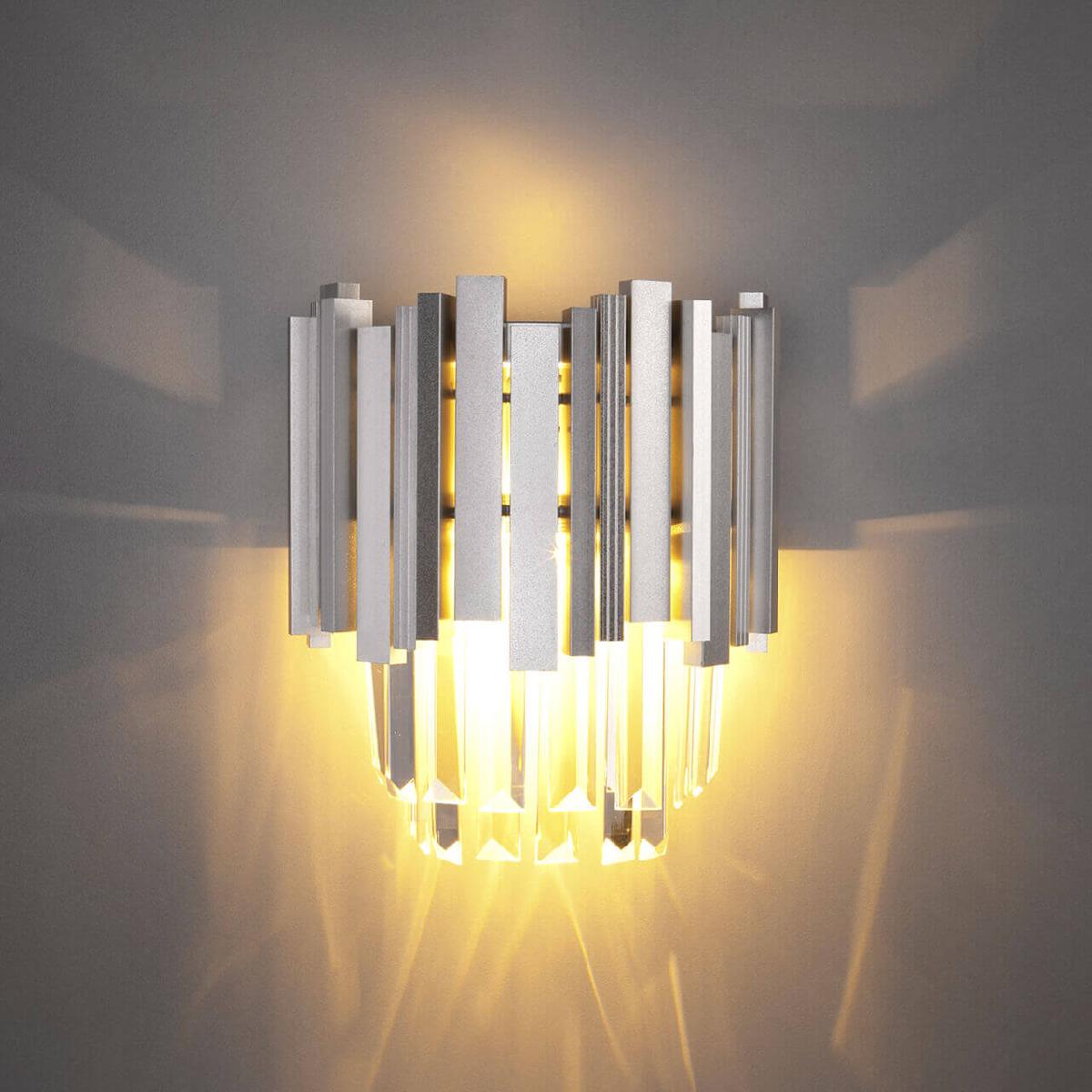 Настенный светильник Bogates 340/1 Strotskis (308/1) от бренда из коллекции Piano предназначен для установки на стену в гостиной в неоклассическом стиле. Cветильник в форме с металлической арматурой серебрянного цвета и прозрачного цвета плафонами из хрусталя предназначен для освещения м2.