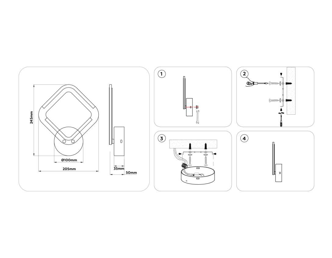Для светильника необходима светодиодных ламп W. Габариты изделия: высота – 50 мм, диаметр – мм.