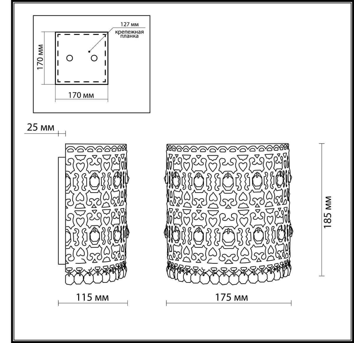 Для светильника необходима 1 лампа накаливания 40 W. Габариты изделия: высота – 185 мм, диаметр – мм.