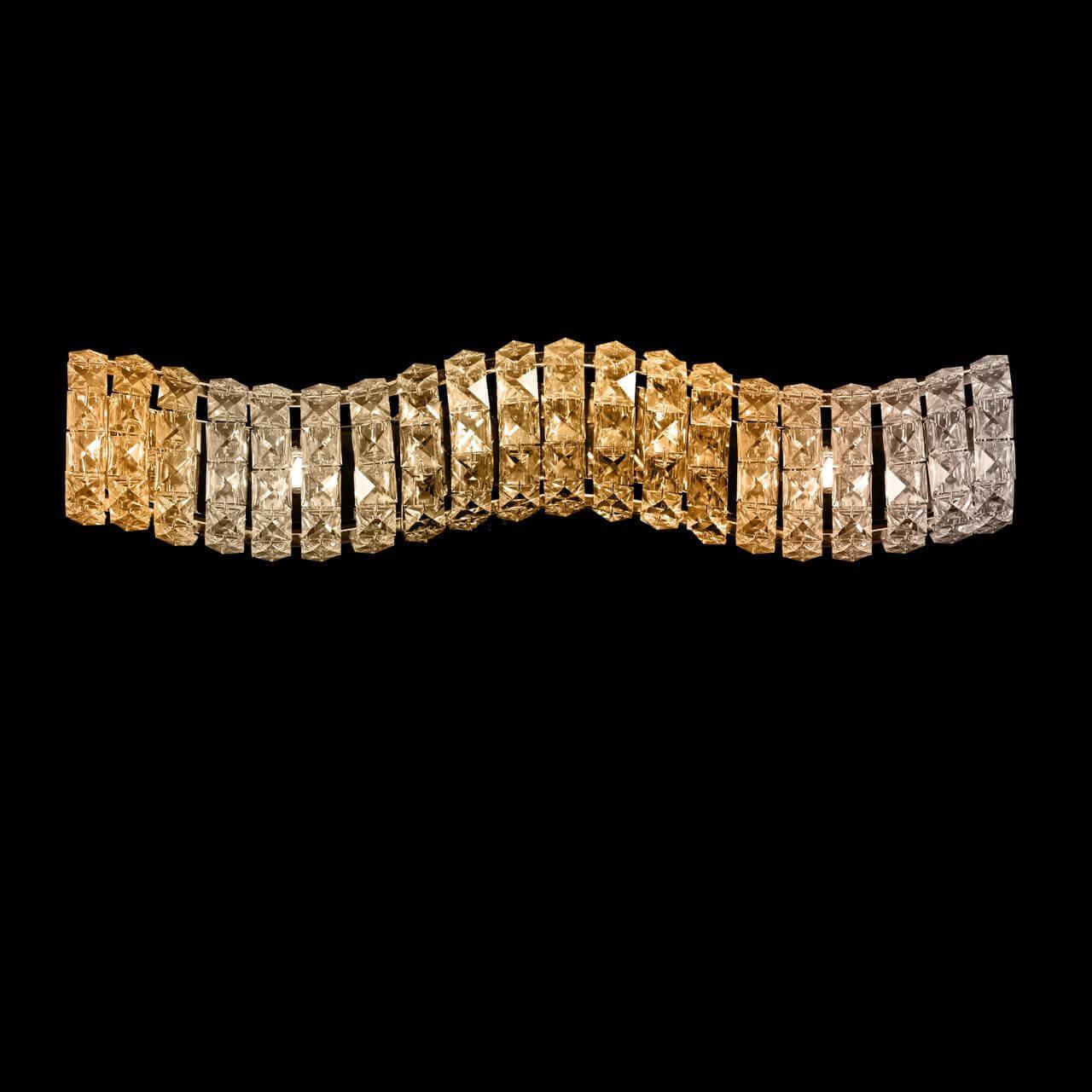 Настенный светильник Lightstar Onda 741642 от Итальянского бренда Lightstar из коллекции Onda предназначен для установки на стену в гостиной в стиле Арт-деко. Cветильник в форме прямоугольника с металлической арматурой залотого цвета и прозрачного цвета плафонами из хрусталя предназначен для освещения 8,9 м2.