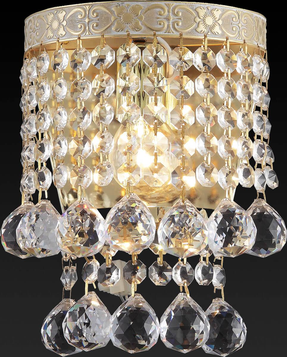 Настенный светильник Toplight Vivien TL7230B-01WG от Российского бренда Toplight из коллекции Vivien Gold предназначен для установки на стену в спальни в классиком стиле. Cветильник в форме декоративного с металлической арматурой залотого цвета и прозрачного цвета плафонами из хрусталя предназначен для освещения 2,2 м2.