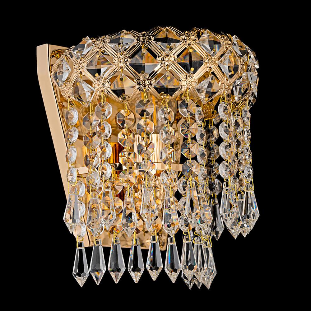 Настенный светильник Arti Lampadari Asti E 2.10.100 G от Итальянского бренда Arti Lampadari из коллекции Asti предназначен для установки на стену в гостиной в классиком стиле. Cветильник в форме декоративного с металлической арматурой залотого цвета и прозрачного цвета плафонами из хрусталя предназначен для освещения 3 м2.
