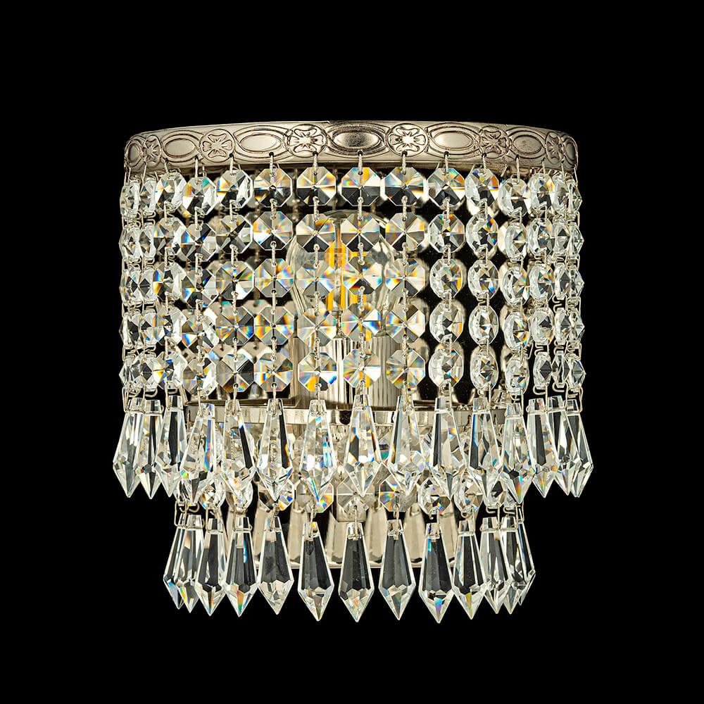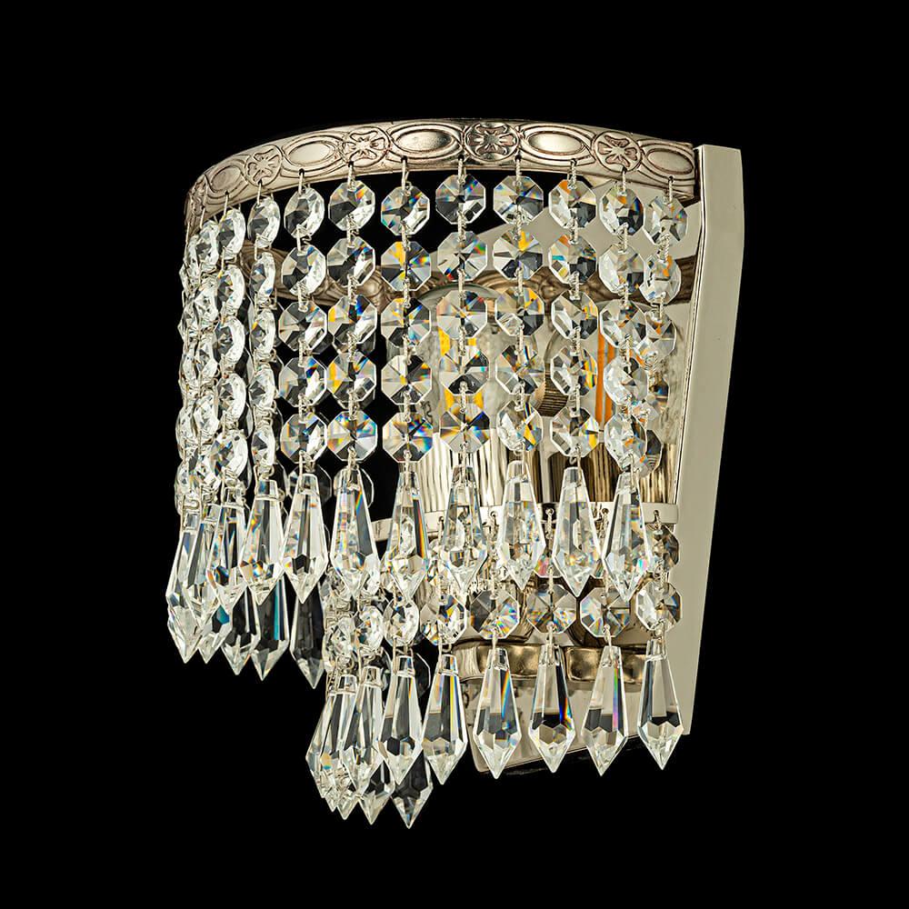 Настенный светильник Arti Lampadari Nonna E 2.10.501 N от Итальянского бренда Arti Lampadari из коллекции Nonna Nickel предназначен для установки на стену в спальни в классиком стиле. Cветильник в форме декоративного с металлической арматурой цвета никель и прозрачного цвета плафонами из хрусталя предназначен для освещения 3 м2.