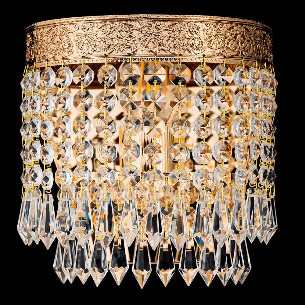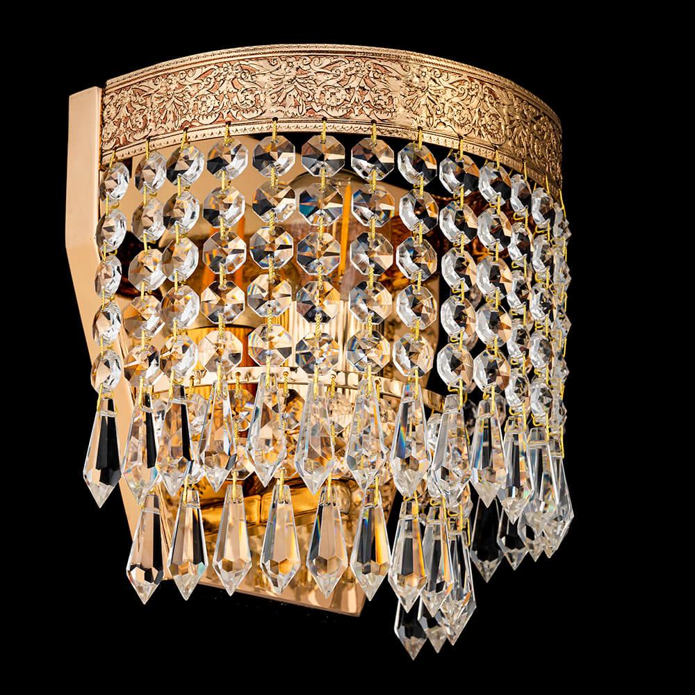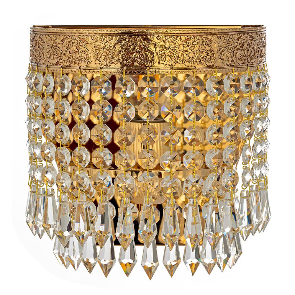 Настенный светильник Arti Lampadari Santa E 2.10.600 GB от Итальянского бренда Arti Lampadari из коллекции Santa GB предназначен для установки на стену в гостиной в классиком стиле. Cветильник в форме декоративного с металлической арматурой залотого цвета и прозрачного цвета плафонами из хрусталя предназначен для освещения 2 м2.