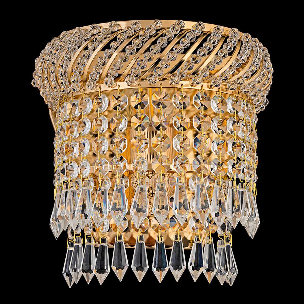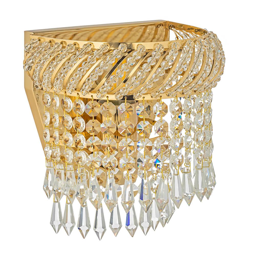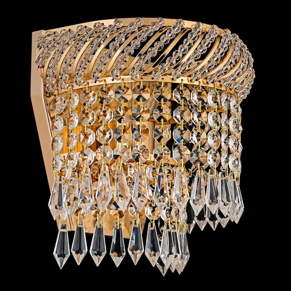 Настенный светильник Dio DArte Elite Bari E 2.10.100 G от Итальянского бренда Dio D`arte из коллекции Bari Gold предназначен для установки на стену в прихожей в классиком стиле. Cветильник в форме декоративного с металлической арматурой и прозрачного цвета плафонами из хрусталя предназначен для освещения 3,3 м2.