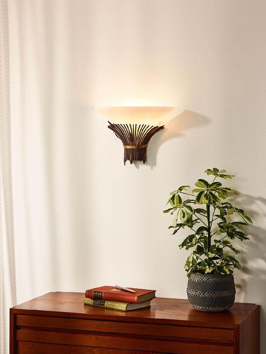 Настенный светильник Lucide Canna 09205/01/97 от бренда Lucide из коллекции Canna предназначен для установки на стену в прихожей в замковом стиле. Cветильник в форме конуса с металлической арматурой бронзового цвета и белого цвета плафонами из стекла предназначен для освещения 2 м2.