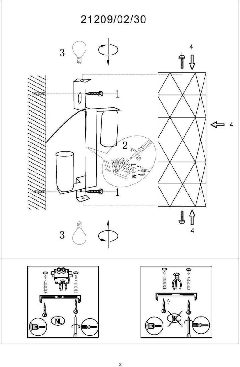 Для светильника необходима 2 лампы накаливания 40 W. Габариты изделия: высота – 200 мм, диаметр – мм.