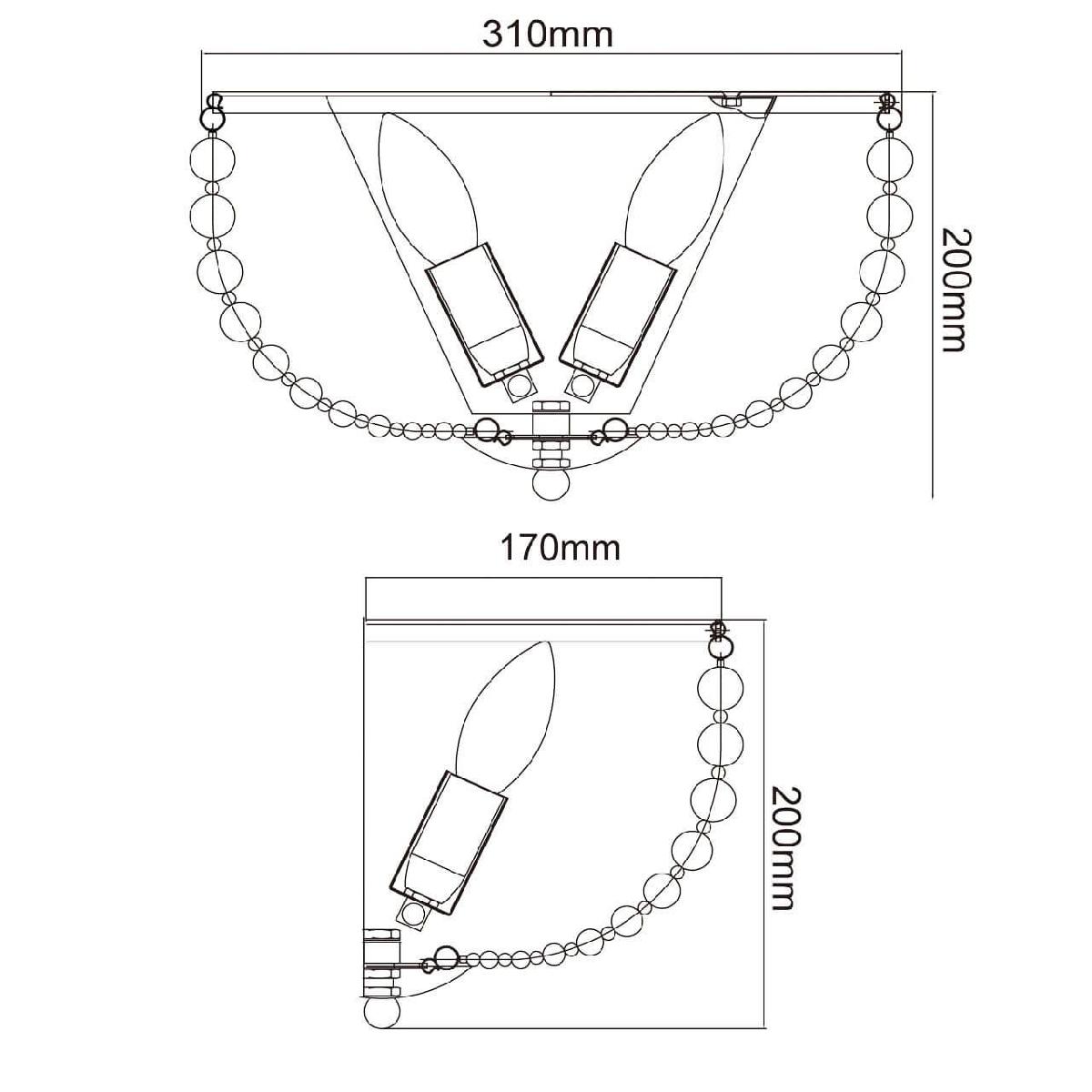 Для светильника необходима 2 лампы накаливания 40 W. Габариты изделия: высота – 170 мм, диаметр – мм.
