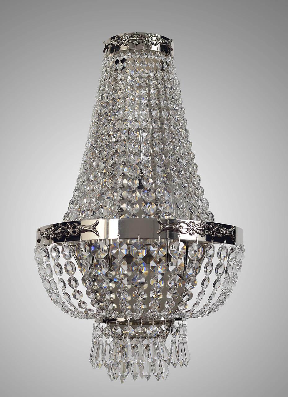 Настенный светильник Arti Lampadari Pera E 2.20.100 N от Итальянского бренда Arti Lampadari из коллекции Pera предназначен для установки на стену в больших залах в классиком стиле. Cветильник в форме декоративного с металлической арматурой цвета никель и прозрачного цвета плафонами из хрусталя предназначен для освещения 3 м2.