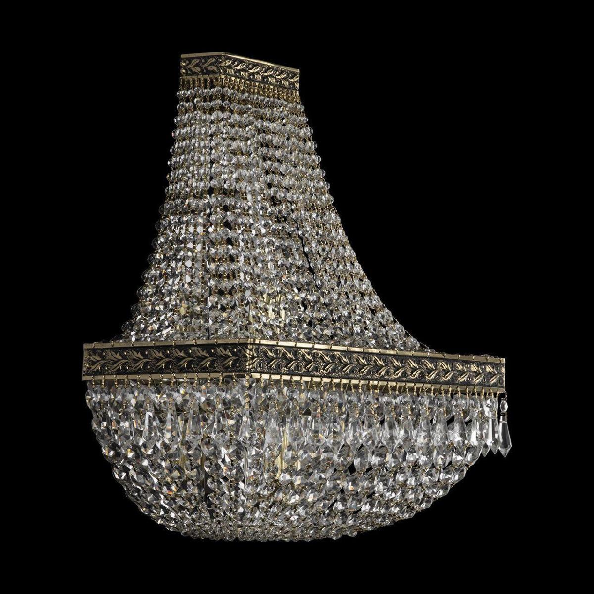 Настенный светильник Bohemia Ivele 19012B/H1/35IV GB от Чешского бренда Bohemia Ivele из коллекции 1901 предназначен для установки на стену в гостиной в классиком стиле. Cветильник в форме декоративного с металлической арматурой и прозрачного цвета плафонами из хрусталя предназначен для освещения 8,9 м2.