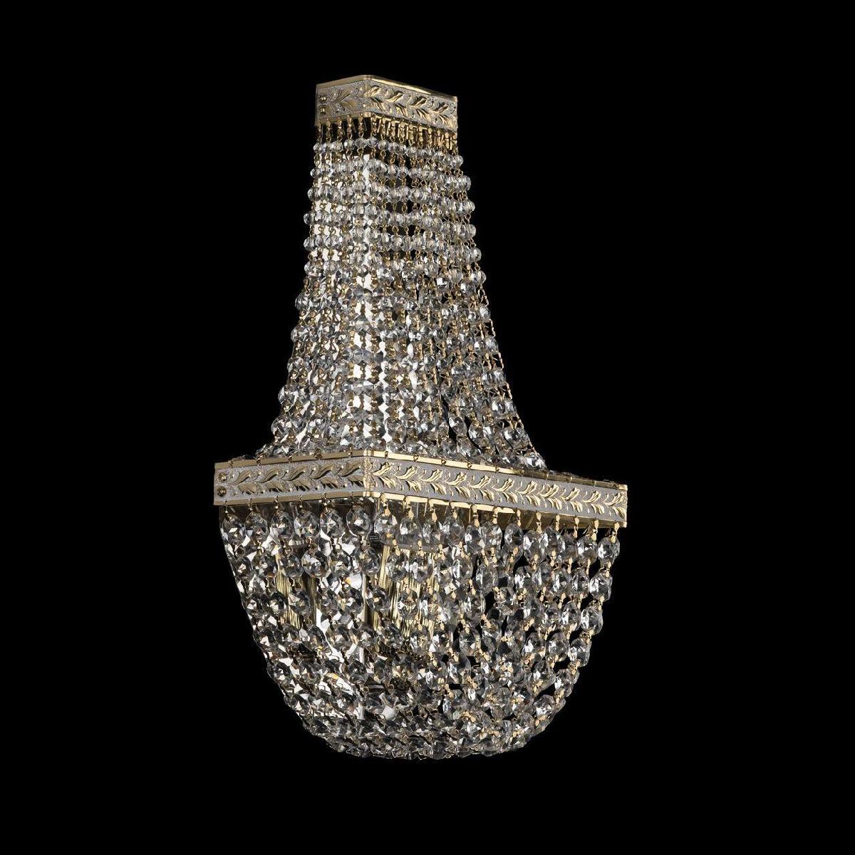 Настенный светильник Bohemia Ivele 19322B/H2/20IV GW от Чешского бренда Bohemia Ivele из коллекции 1932 предназначен для установки на стену в гостиной в классиком стиле. Cветильник в форме декоративного с металлической арматурой и прозрачного цвета плафонами из хрусталя предназначен для освещения 4,4 м2.