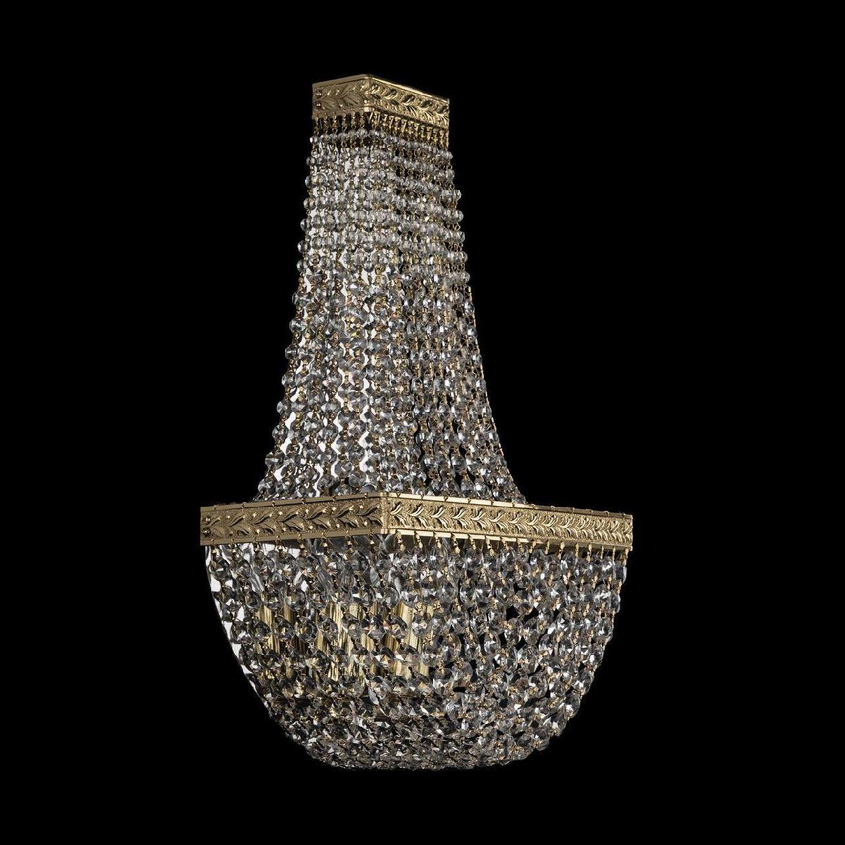 Настенный светильник Bohemia Ivele 19322B/H2/25IV G от Чешского бренда Bohemia Ivele из коллекции 1932 предназначен для установки на стену в гостиной в классиком стиле. Cветильник в форме декоративного с металлической арматурой и прозрачного цвета плафонами из хрусталя предназначен для освещения 6,7 м2.