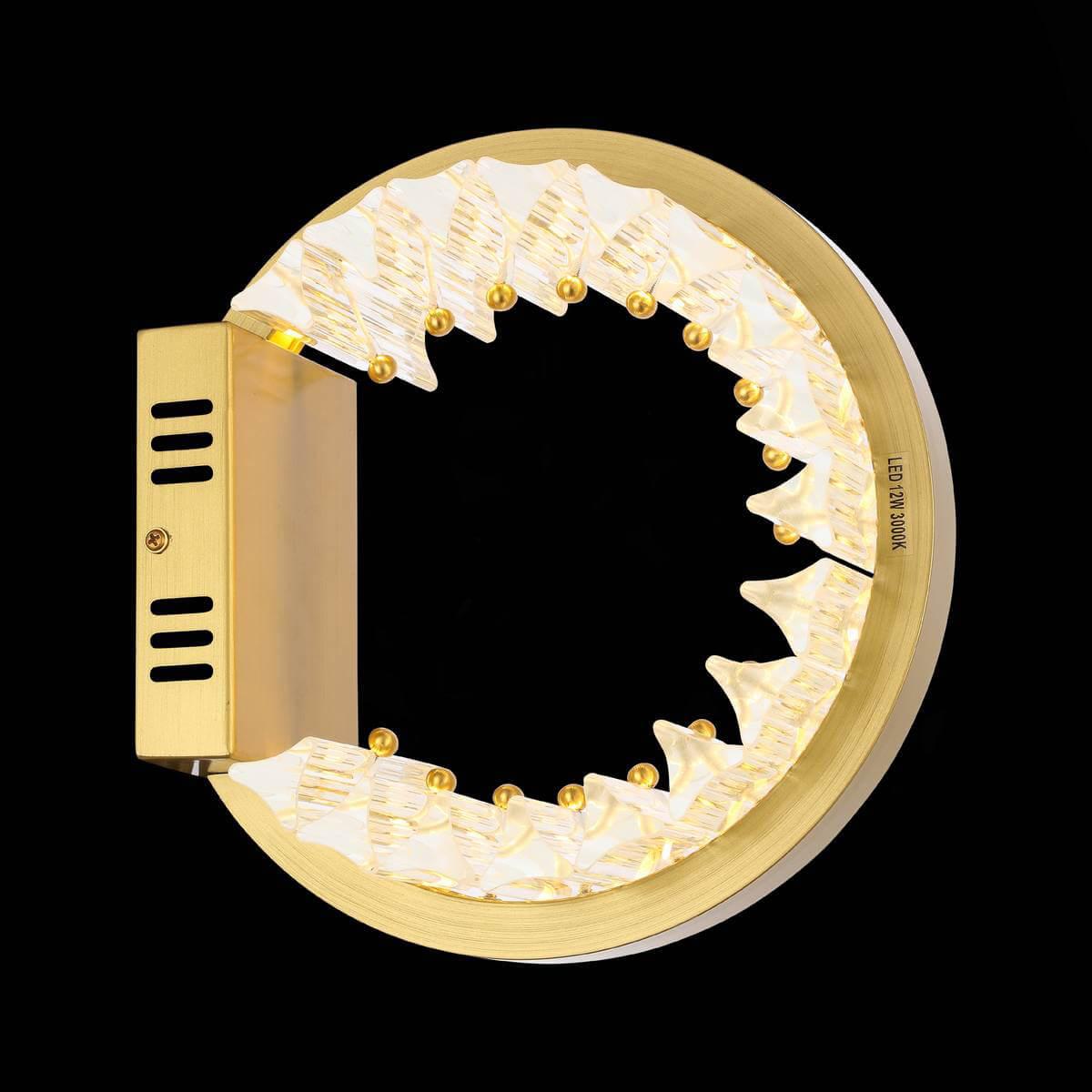 Настенный светодиодный светильник ST Luce Cherio SL383.201.01 от Итальянского бренда ST Luce из коллекции Cherio предназначен для установки на стену в гостиной в дизайнерском стиле. Cветильник в форме круга с металлической арматурой залотого цвета и прозрачного цвета плафонами из хрусталя предназначен для освещения 4 м2.